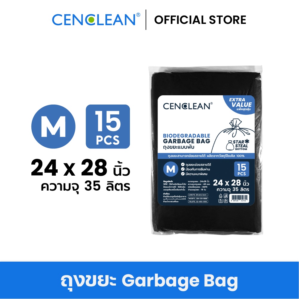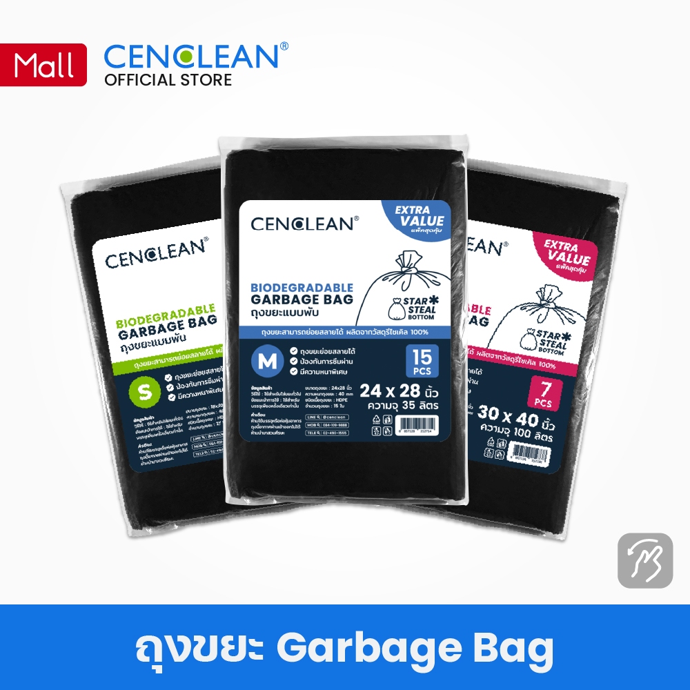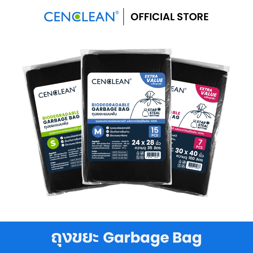 CENCLEAN ย่อยสลายได้ Biodegradable Garbage Bag - Extra Value รุ่นแพ็คสุดคุ้ม แบบพับ