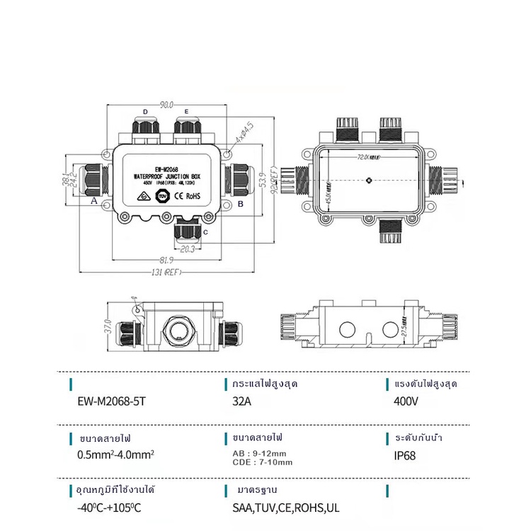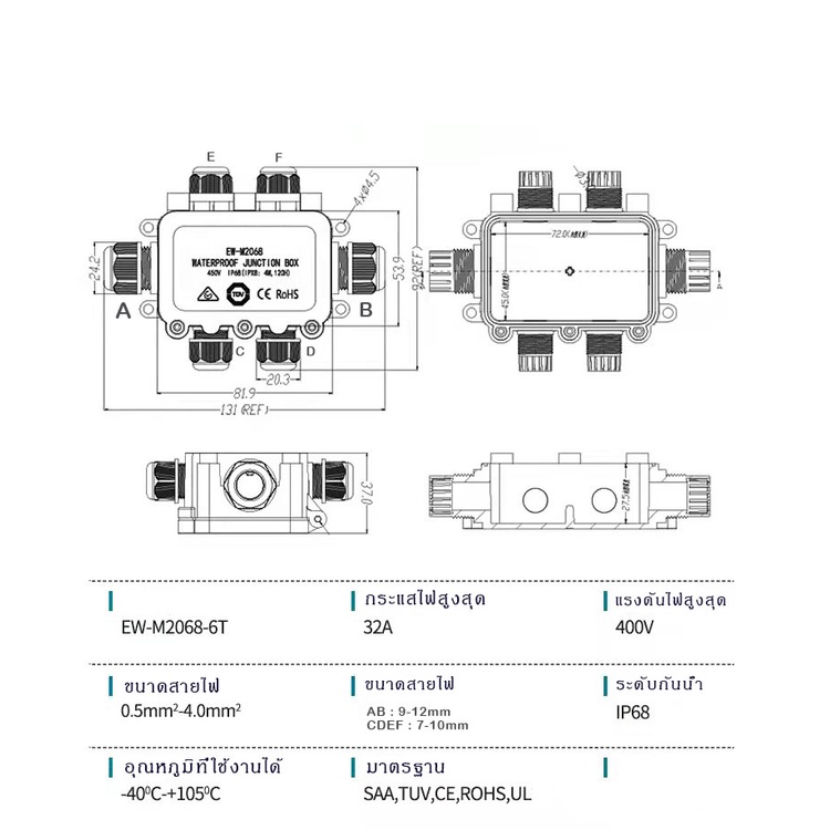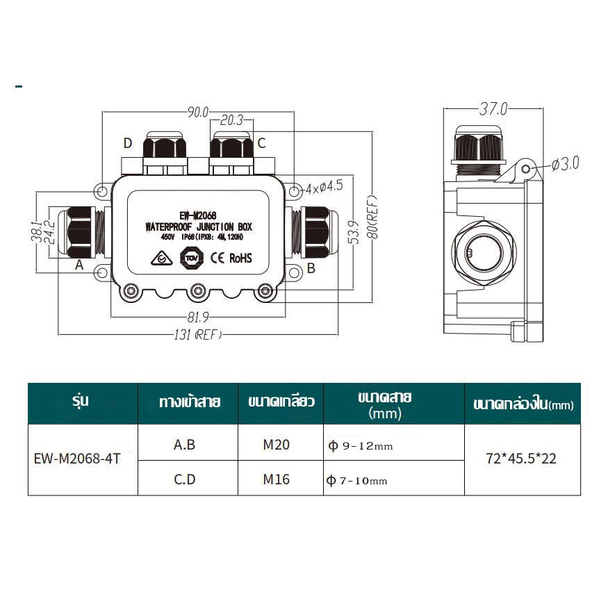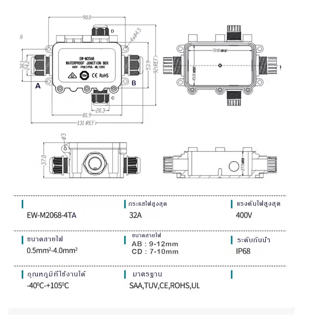 กล่องสายไฟกันน้ำ กล่องเทอร์มินอล ข้อต่อกันน้ำ IP68 4T/4TA/5T/6T ต่อสายไฟLED แหล่งจ่ายไฟนอกสถานที่ ใต้น้ำ