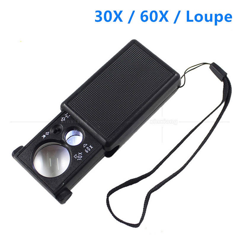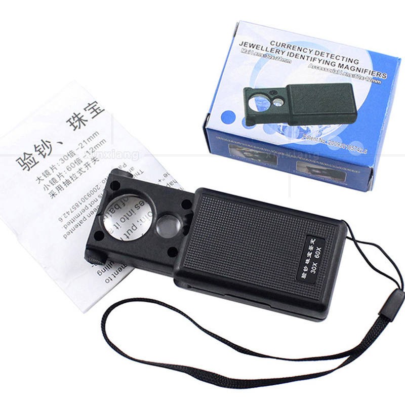 แว่นขยาย 30X 60 X เลนส์คู่มินิดึง LED สำหรับการอ่าน