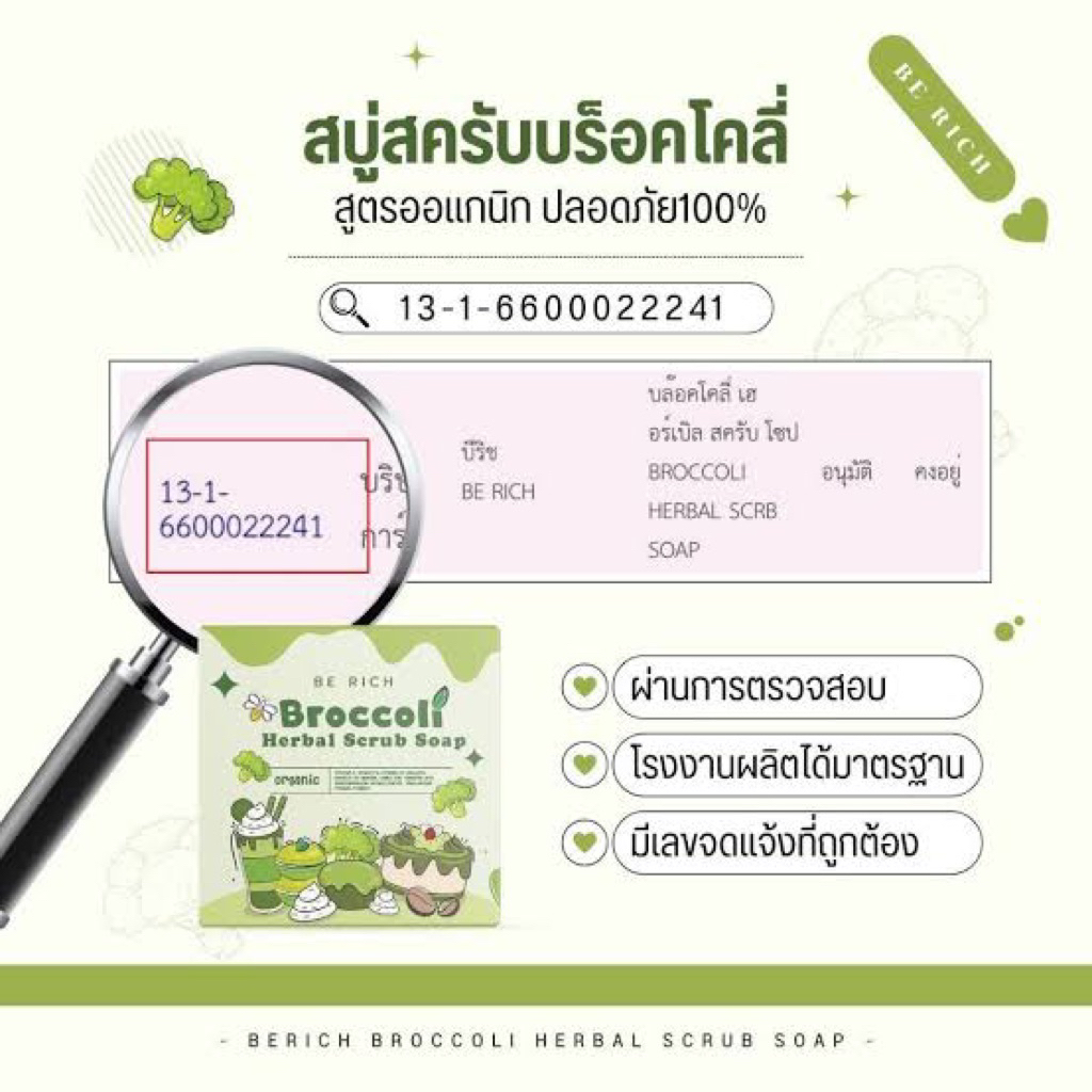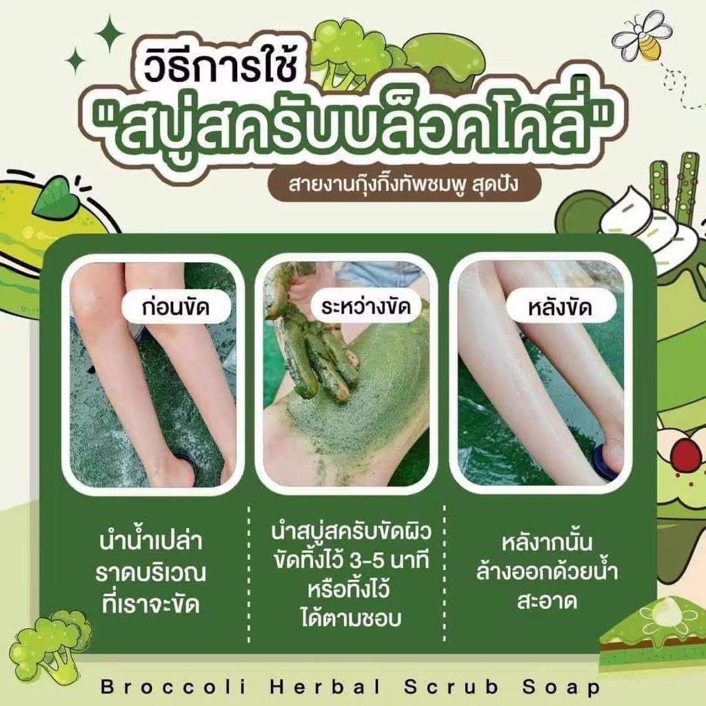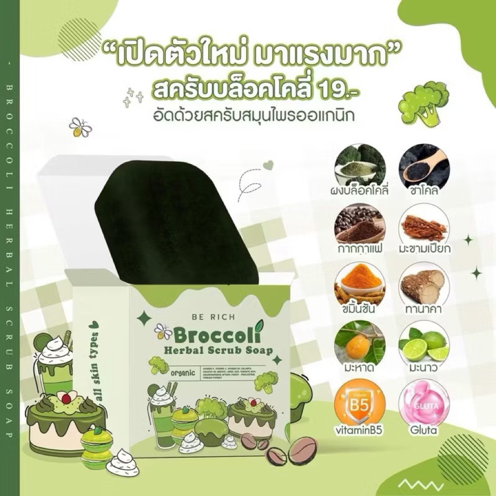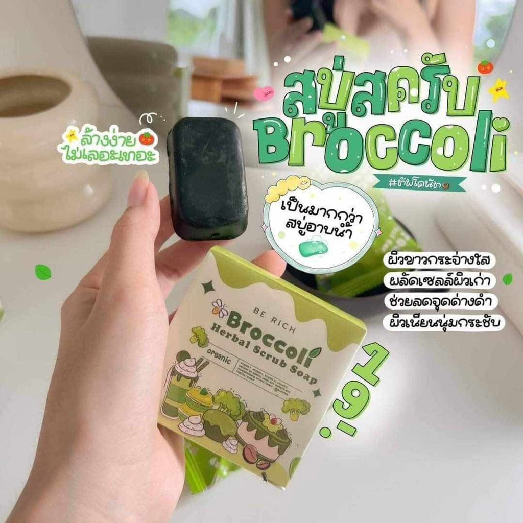 10 ก้อน สครับบล็อคโคลี่ สบู่บีริช Berich บล็อคโคลี่ Broccoli 35 g.