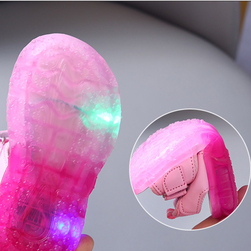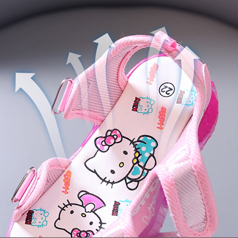 SUGE รองเท้าแตะลําลอง ลายการ์ตูนแมว มีไฟ LED สีชมพู สีม่วง แฟชั่นชายหาด สําหรับเด็ก