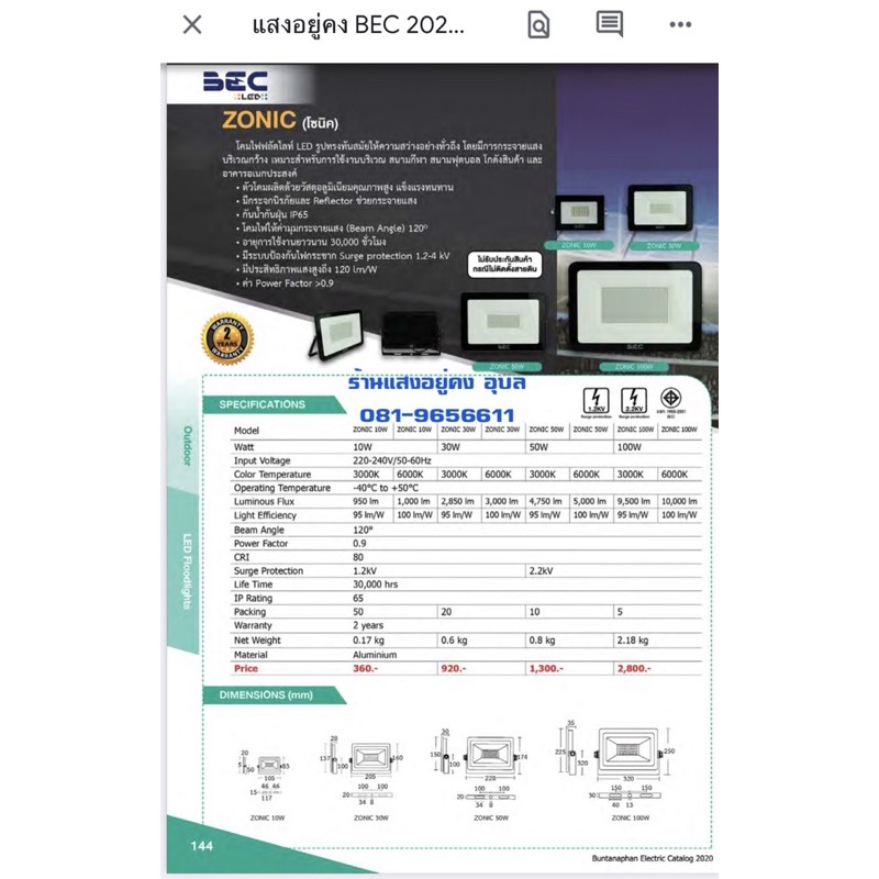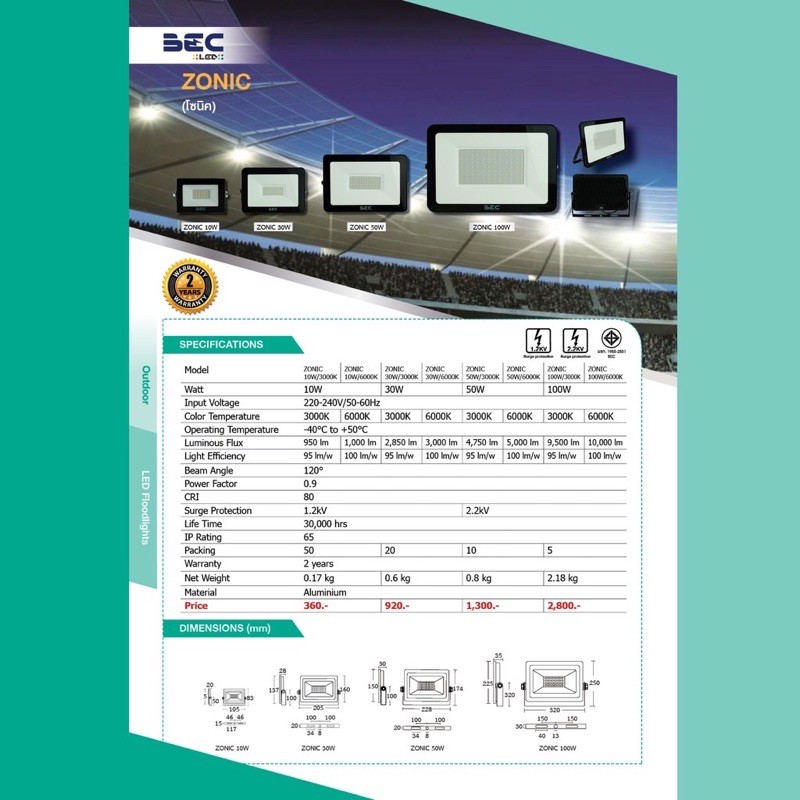 🔥สปอร์ตไลท์ LED 10w ยี่ห้อBEC