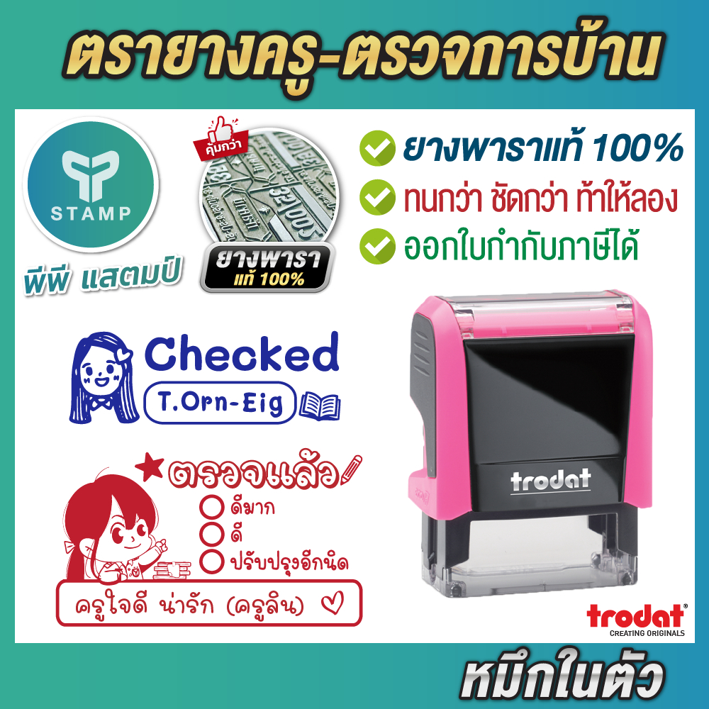 [PPstamp] ตรายางคุณครู ตรวจการบ้าน หมึกในตัว ยางพารา เลือกการตูน/แบบได้ (**กรุณาทักแชทก่อนสั่งซื้อ**เลือกสีบอดี้ในแชท**)