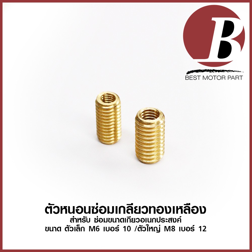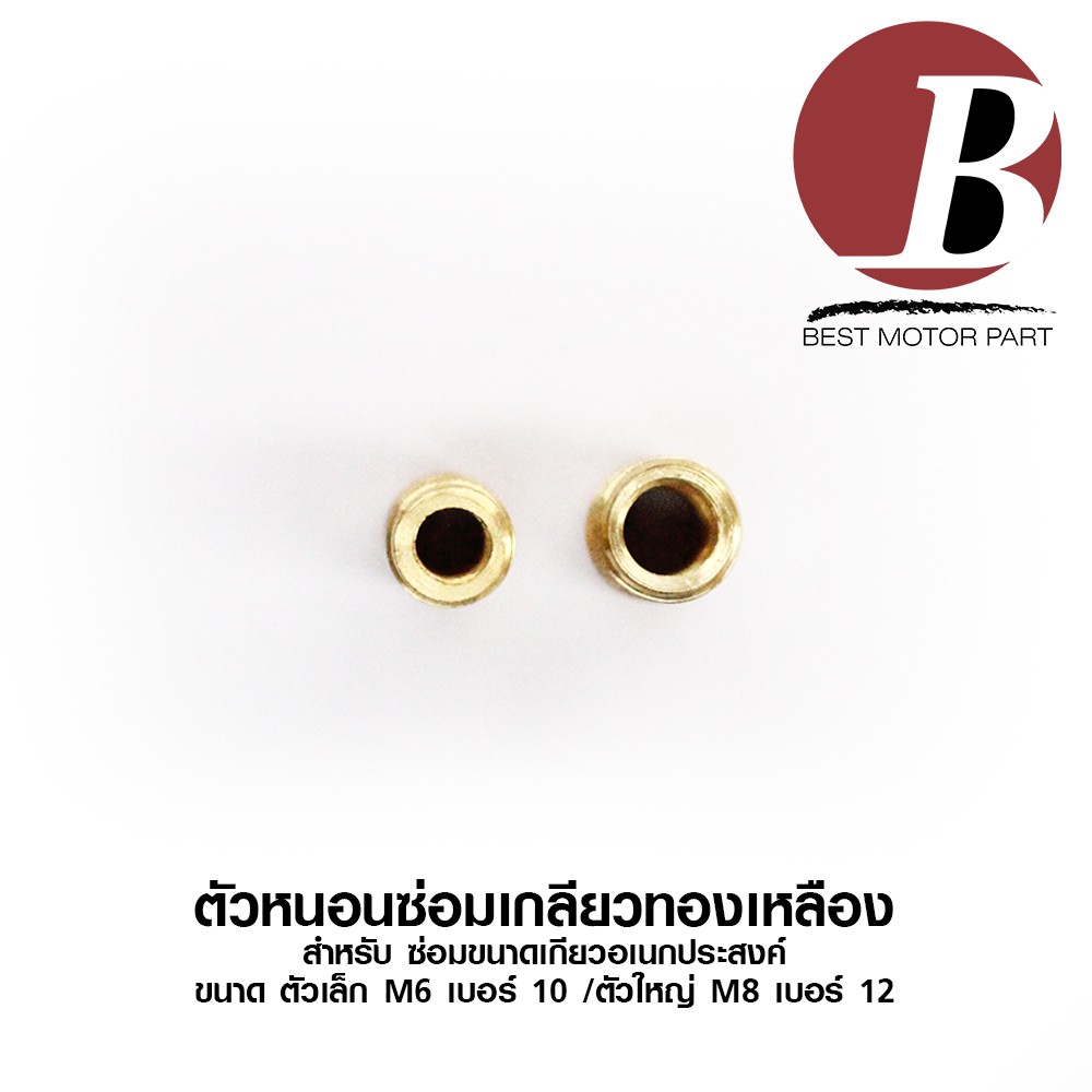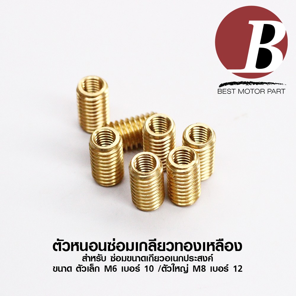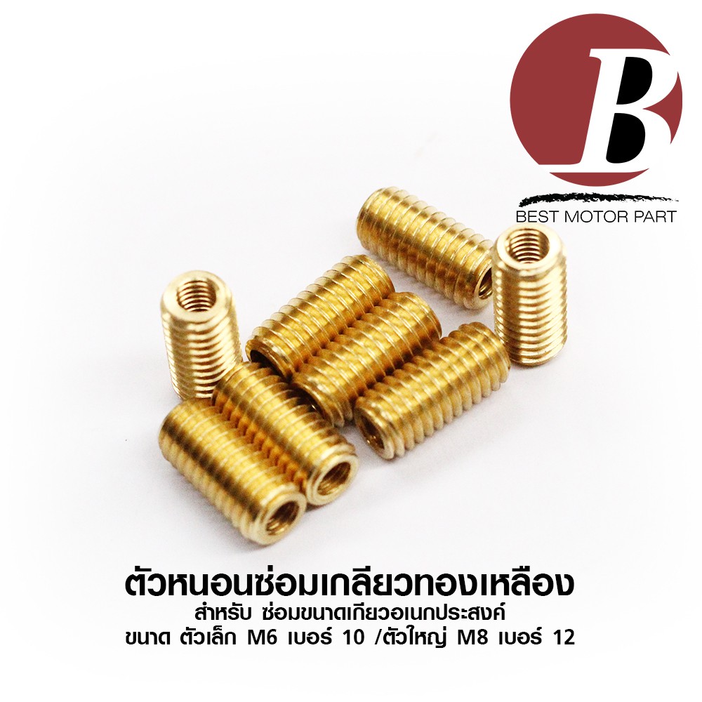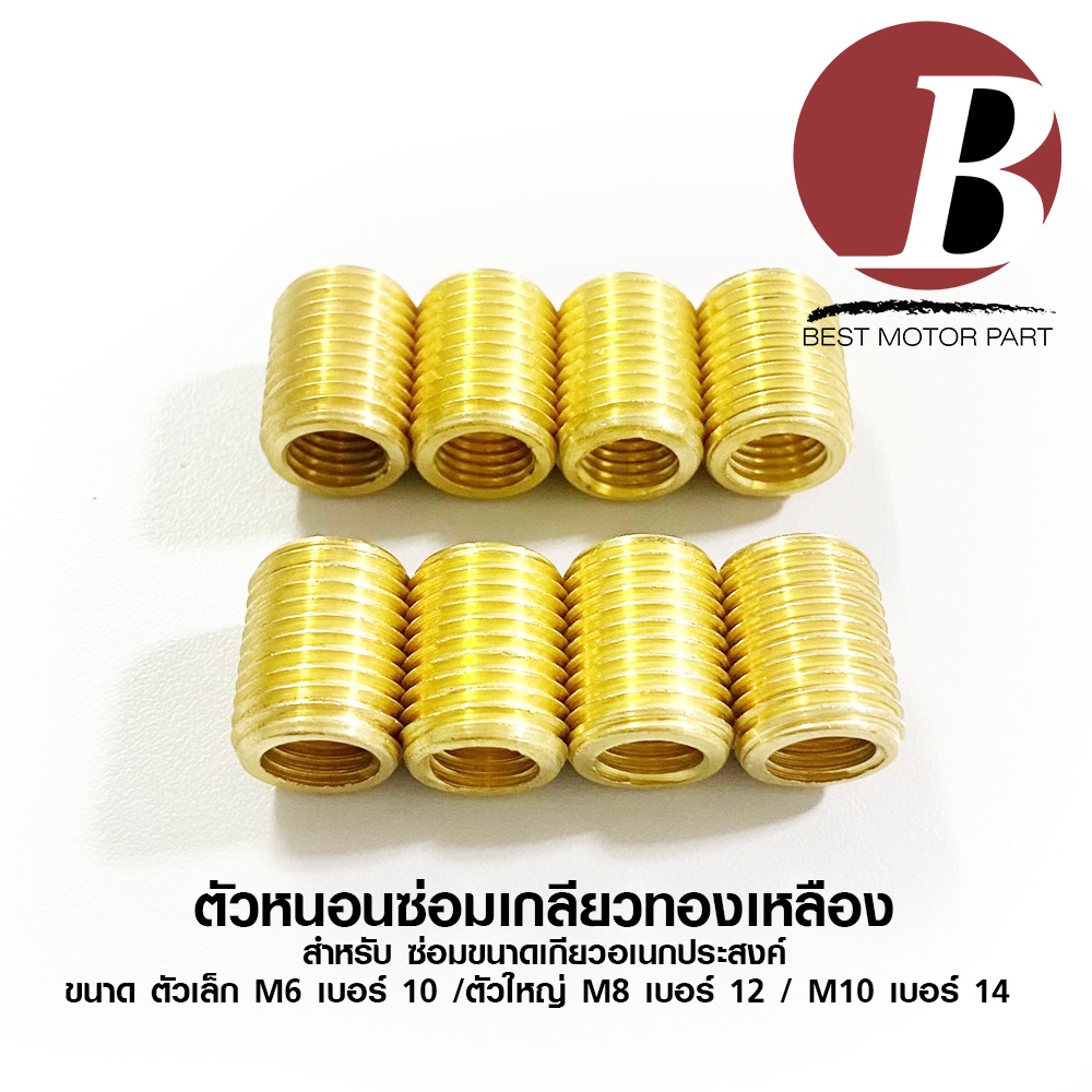 เกลียวทองเหลือง ตัวหนอนซ่อมเกลียว ตัวเล็ก M6 เบอร์ 10/ M8 เบอร์ 12 / ตัวใหญ่ M10 เบอร์14 ต๊าบเกลียว *เบอร์ตามเกลียวนอก*