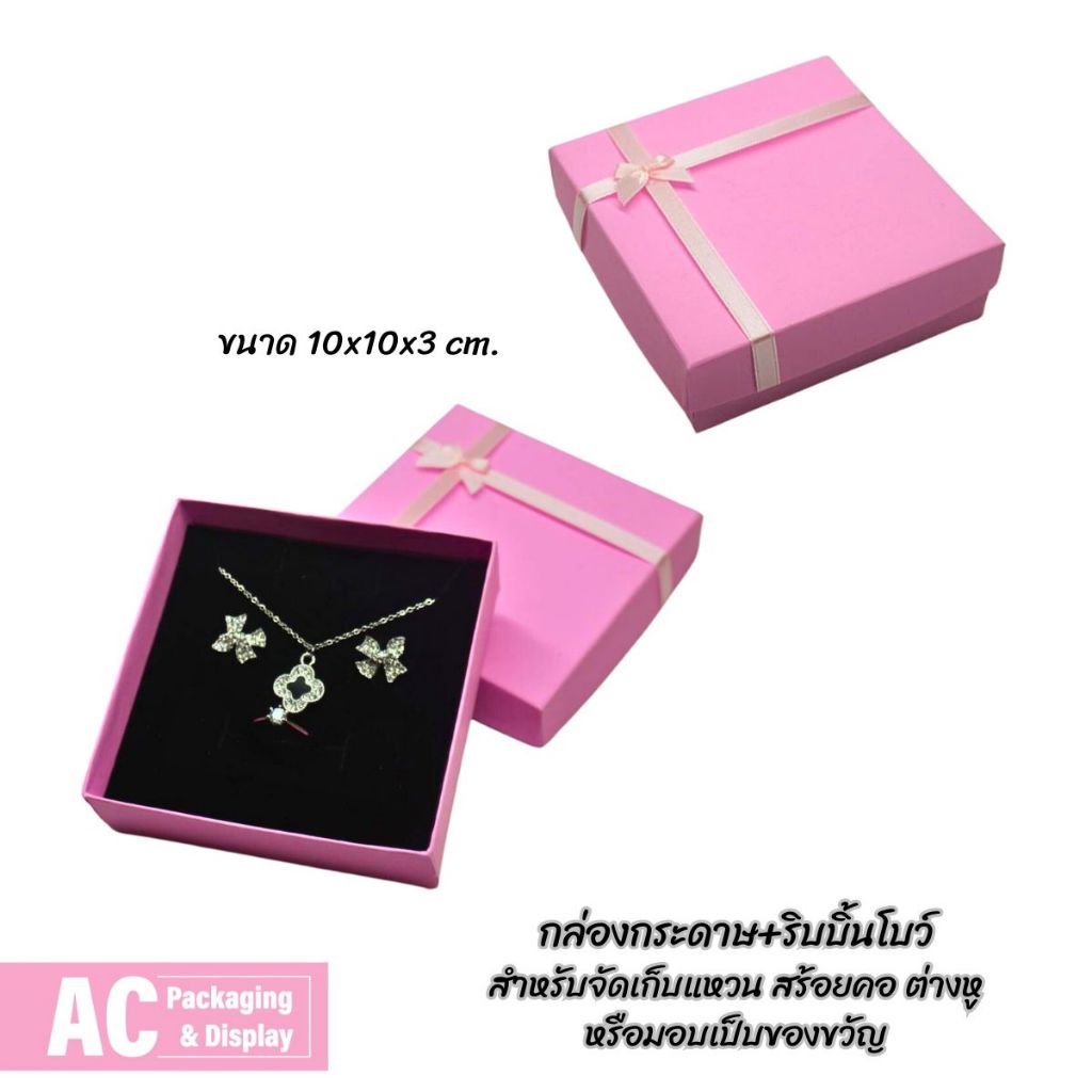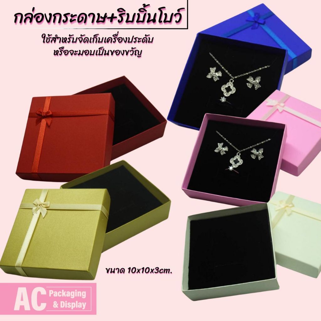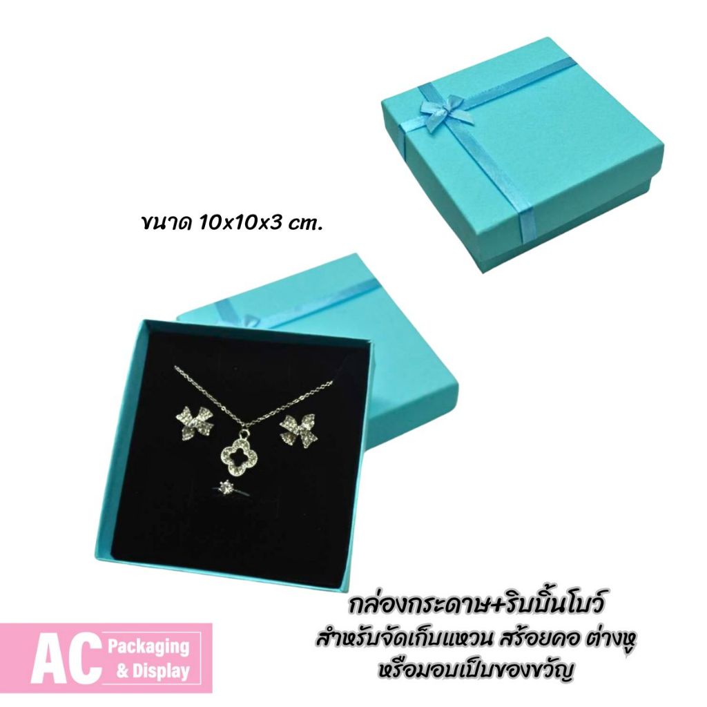 กล่องกระดาษพร้อมโบว์เก็บเครื่องประดับ มอบเป็นของขวัญ ขนาด10x10x3 cm. จัดส่งรวดเร็ว สินค้าพร้อมส่ง