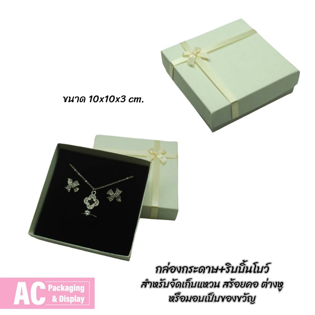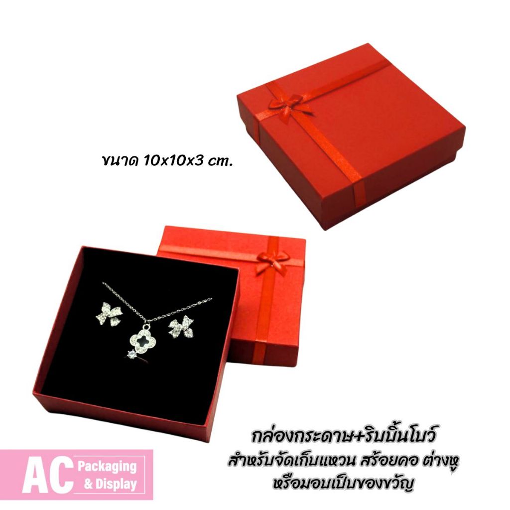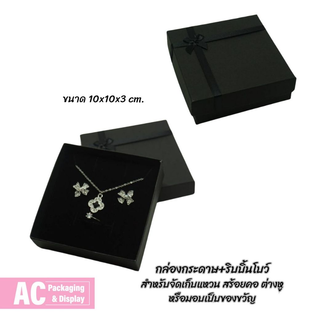 กล่องกระดาษพร้อมโบว์เก็บเครื่องประดับ มอบเป็นของขวัญ ขนาด10x10x3 cm. จัดส่งรวดเร็ว สินค้าพร้อมส่ง