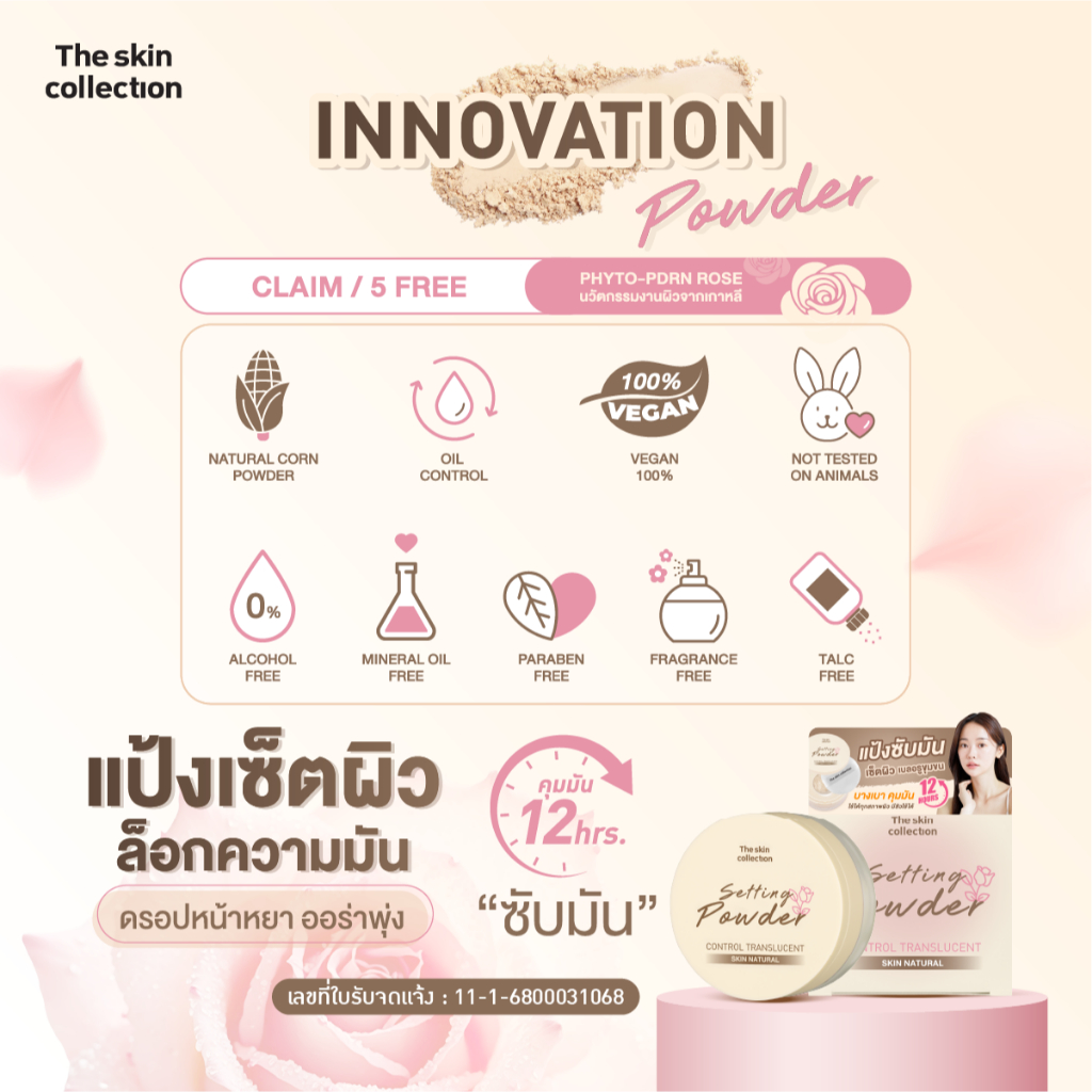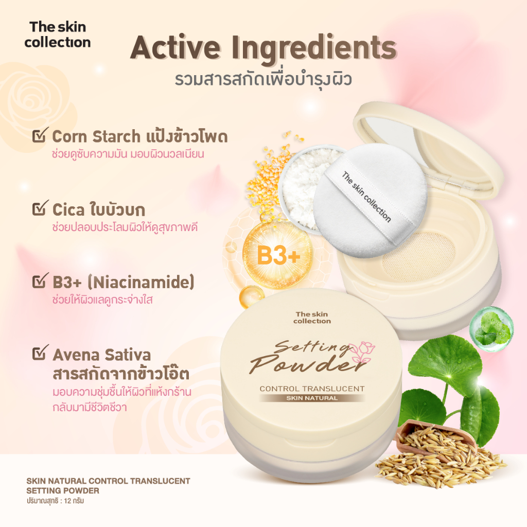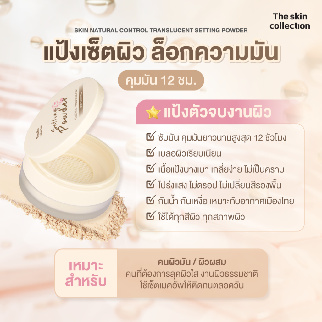 ใหม่! แป้งซับมัน เซ็ตผิว เบลอรูขุมขน The skin collection SKIN NATURAL CONTROL TRANSLUCENT SETTING POWDER 12g. กันน้ำ