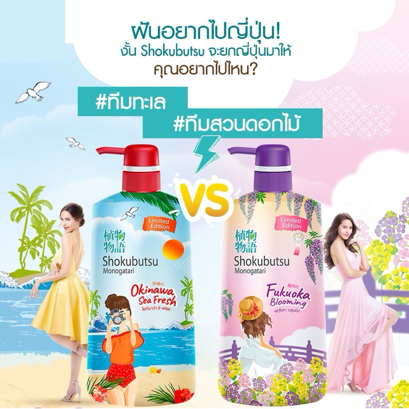 ‼️1 & 2 ขวด‼️ Shokubutsu Monogatari ครีมอาบน้ำ โชกุบุสซึ โมโนกาตาริ Vacation Series ✔️ขวดปั๊ม 500 มล✔️มี 2 กลิ่นให้เลือก