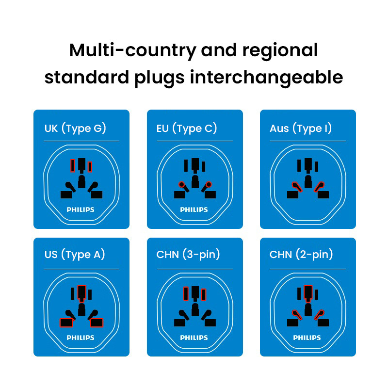 ปลั๊กอะแดปเตอร์แปลงไฟ ฟิลิปส์ ตัวแปลงแบบพกพา