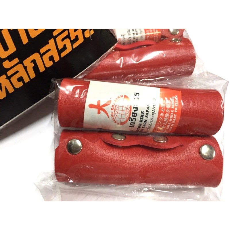 นวมแฮนด์ หนัง มีกระดุม นุ่มมือ สีแดง