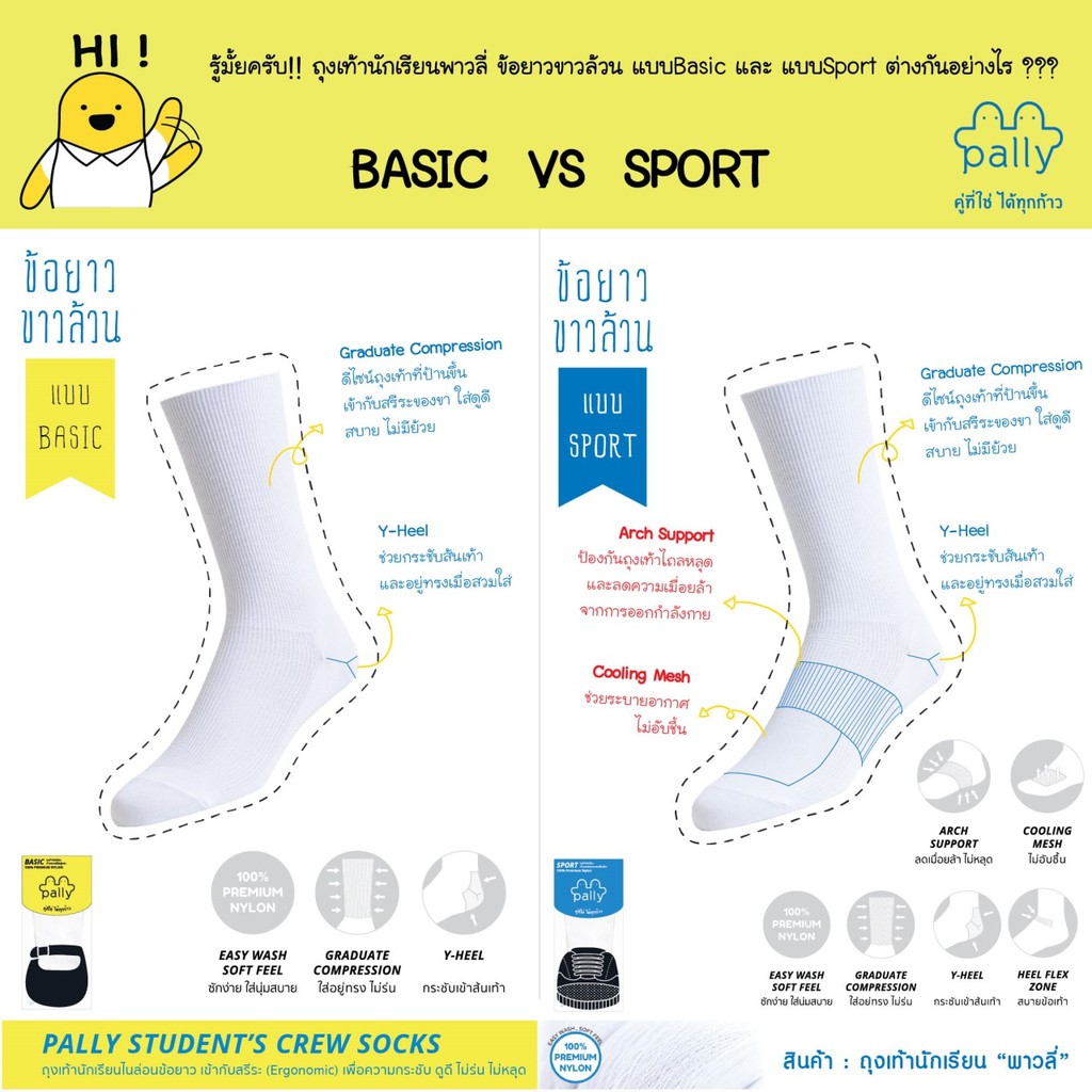 Pally ถุงเท้านักเรียนข้อยาวขาวล้วน SPORT เนื้อพรีเมี่ยมไนล่อน ลอนเล็กครึ่งแข้ง มีขนาดใหญ่พิเศษ 1 คู่