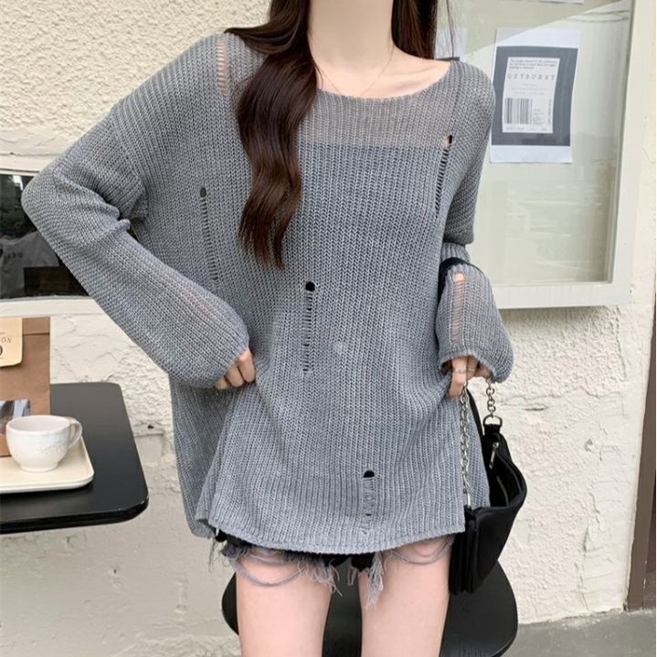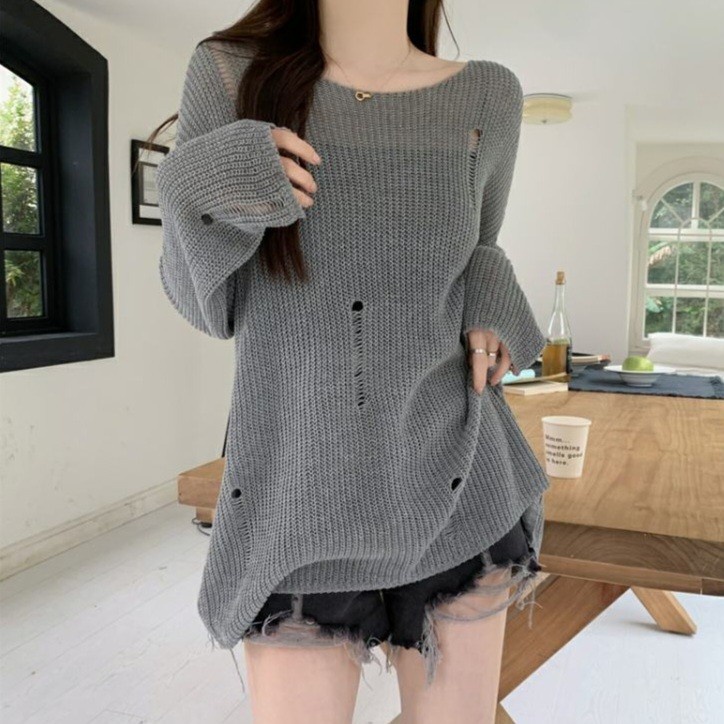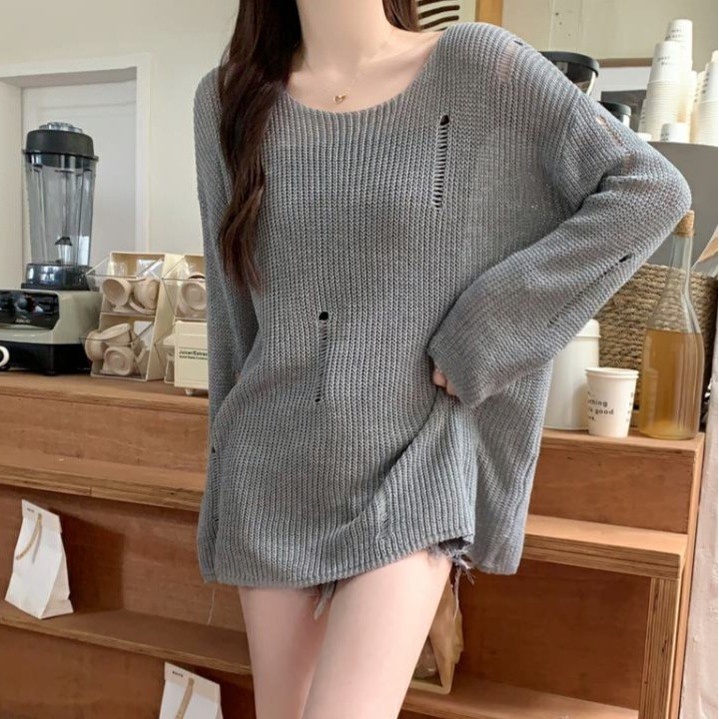 JJ shop 💜พร้อมส่ง เสื้อไหมพรมซีทรู แขน ยาวบางๆ น่ารักมี 2สี "M5847"-C