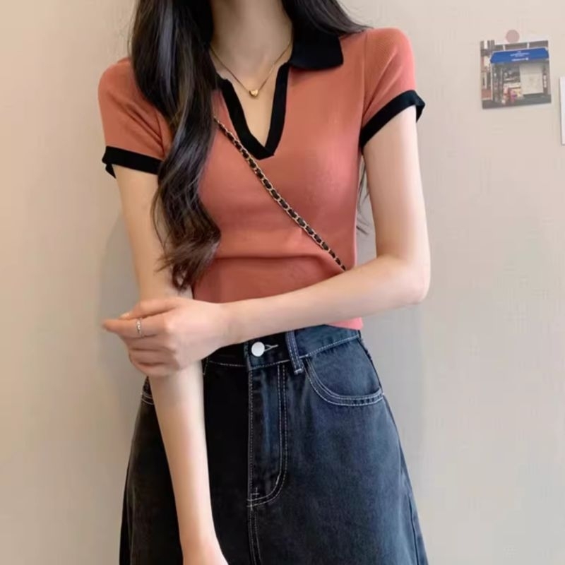 JJ Shop💜พร้อมส่ง เสื้อคอปกทรงครอปผ้านิ่มใส่สบายมากค่าอิอิ "K282"