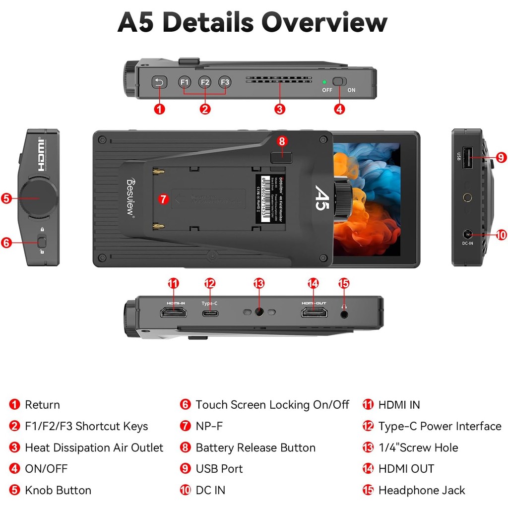 Desview A5 Touch Screen Camera Field Monitor 5.5" 600nits 4K HDMI in/Out ประกันศูนย์ไทย