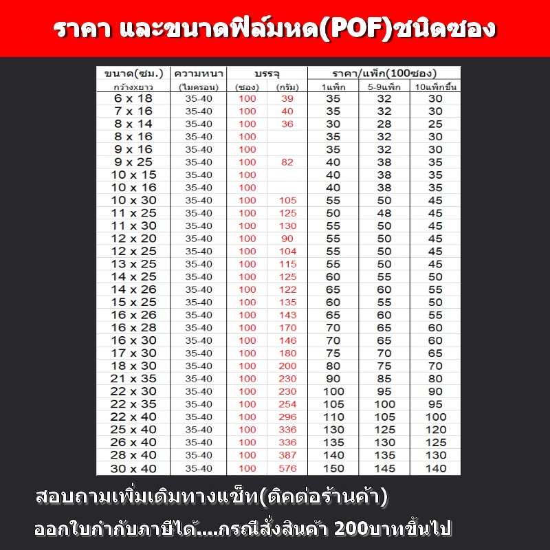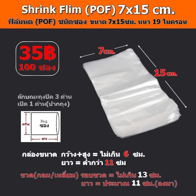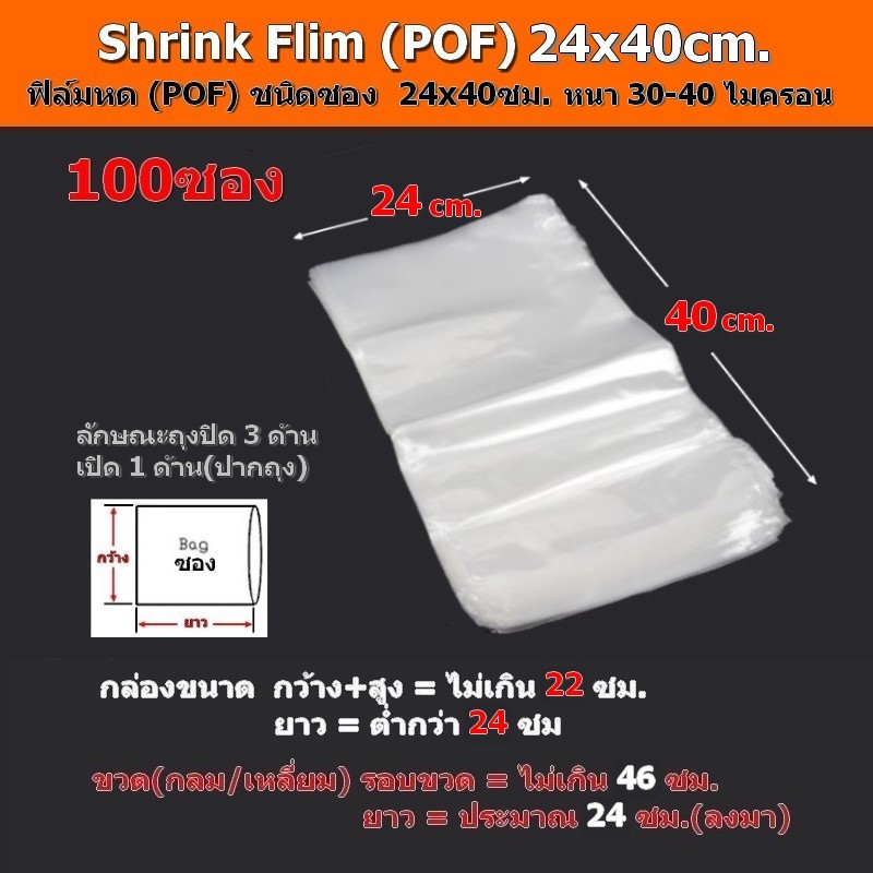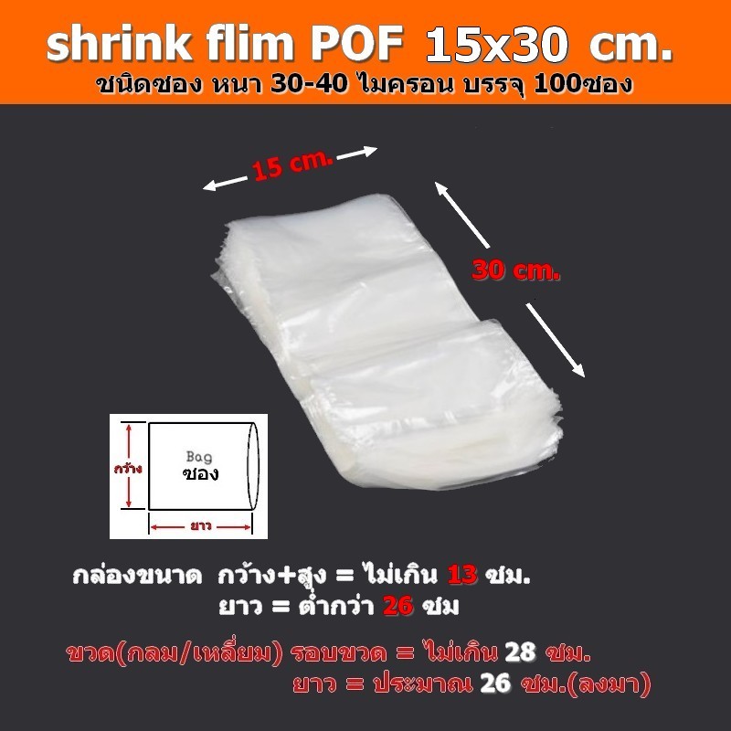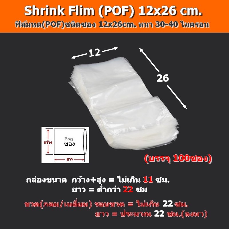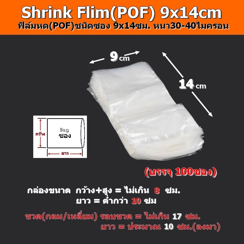 ฟิล์มหด(POF)100ซอง 6x18,8x14/16,9x16,/10x16,10/15/16/30,11x25,12x25,13x25,14x25/26,15x25....28x40cm