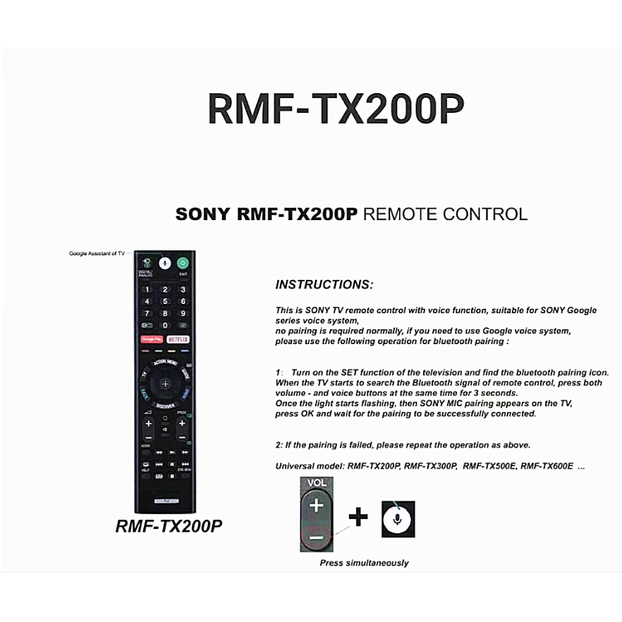 Sony RMF-TX200P สมาร์ททีวีรีโมทคอนโทรลเสียง 1/เปลี่ยน RMF-TX200P สําหรับ SONY Android TV รีโมทคอนโทรล RMFTX200U KD-55X8500D ระยะไกล