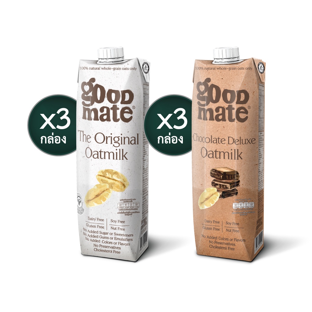 Goodmate นมโอ๊ต สูตรออริจินอล ขนาด 1000 มล. (3 กล่อง) + สูตรช็อกโกแลตดีลักซ์ ขนาด 1000 มล. (3 กล่อง) - (1 ลัง: 6 กล่อง)