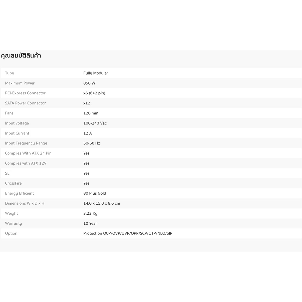 (ล้างสต๊อก ของใหม่) พาวเวอร์ซัพพลาย XPG Power Supply Core Reactor 850Watt 80Plus Gold - 10 Year