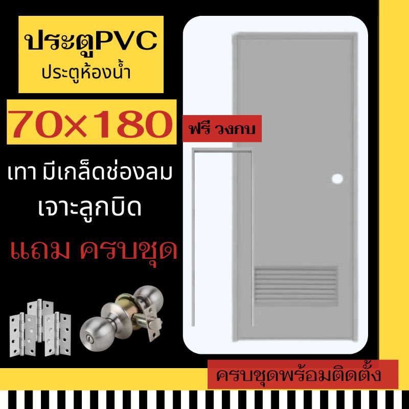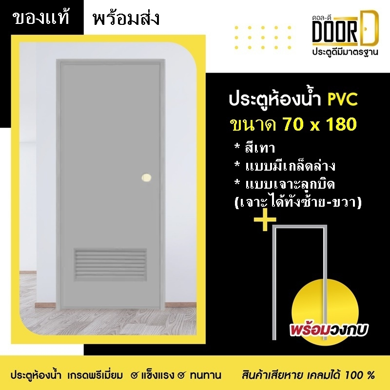 ‼️โปรร้านเปิดใหม่📢ประตูห้องน้ำ ประตูPVC (สีเทา) บานเกล็ดช่องลม เจาะลูกบิด 70×180 ประตูห้องน้ำ ประตูPVC พร้อมส่ง