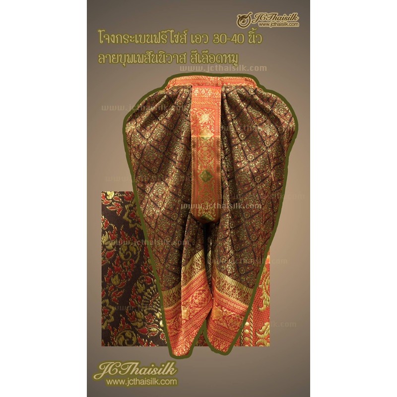 โจงกระเบน ลาย บุพเพ1 เนื้อไหมผสม ฟรีไซส์ เอว 30-40”
