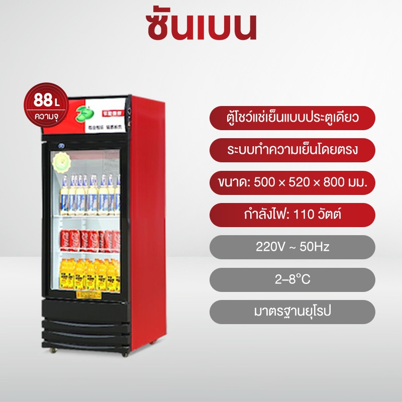 SHANBEN ตู้แช่เครื่องดื่ม ตู้เย็นประตูเดียว ตู้เย็น ทำงานเงียบ ความจุเยอะ แช่เย็นปลอดภัย ตู้ฉนวนกันค 88L/188L/268