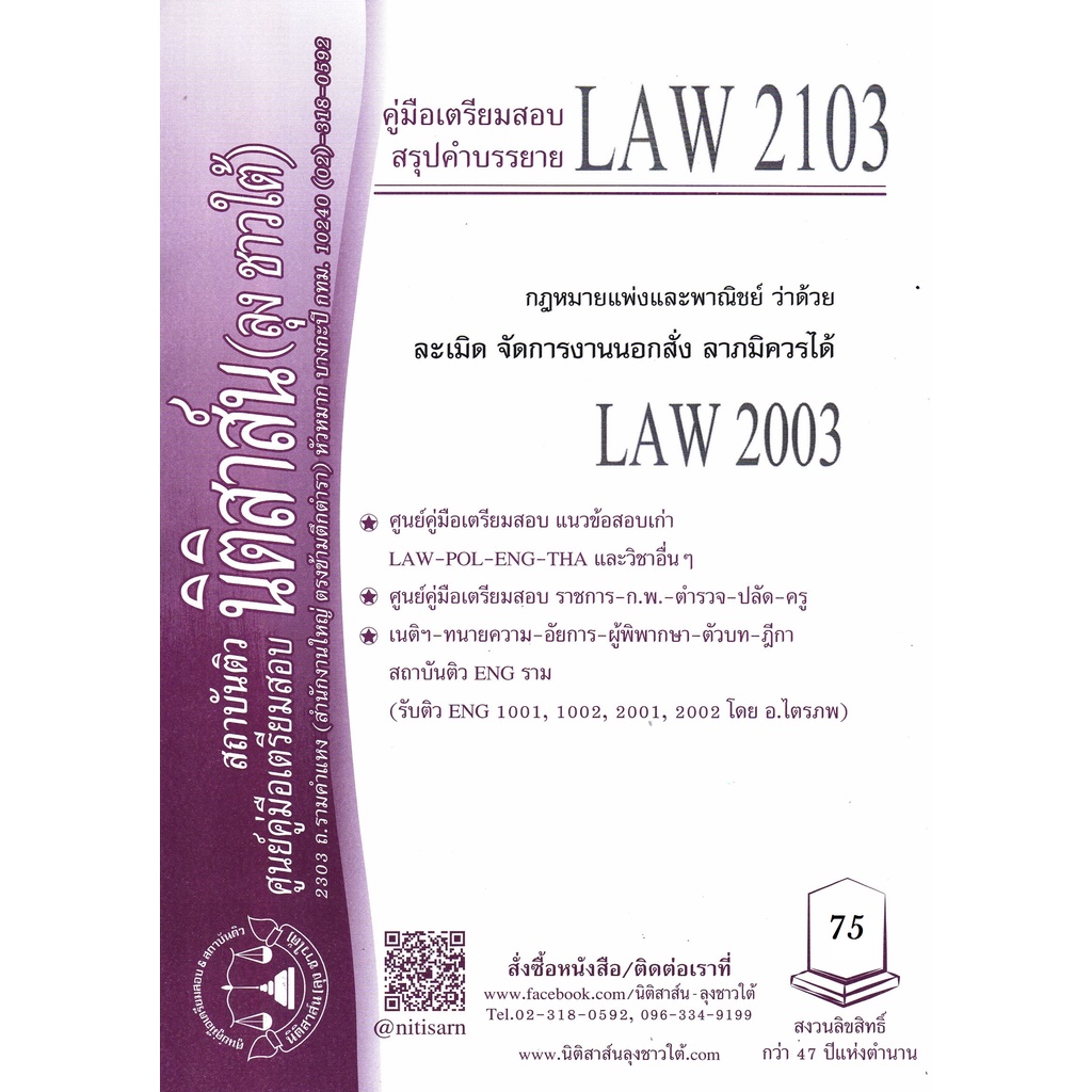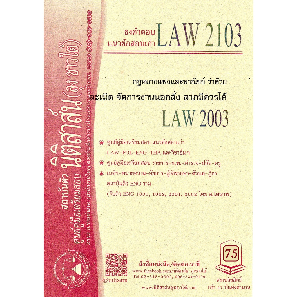 LAW 2103, LAW 2003 ละเมิด จัดการงานนอกสั่ง ชีทราม (นิติสาส์น-ลุงชาวใต้)