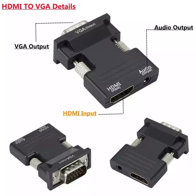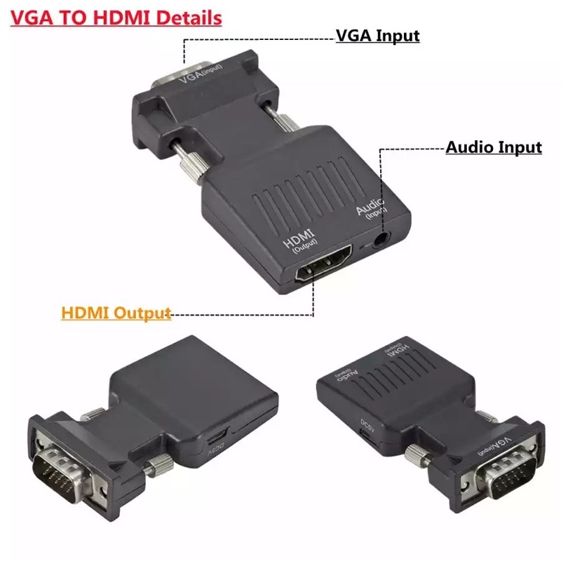 VGA To HDMI Converter Adapter 1080P สำหรับอะแดปเตอร์ VGA สำหรับ PC แล็ปท็อป HDTV โปรเจคเตอร์วิดีโอเสียง HDMI