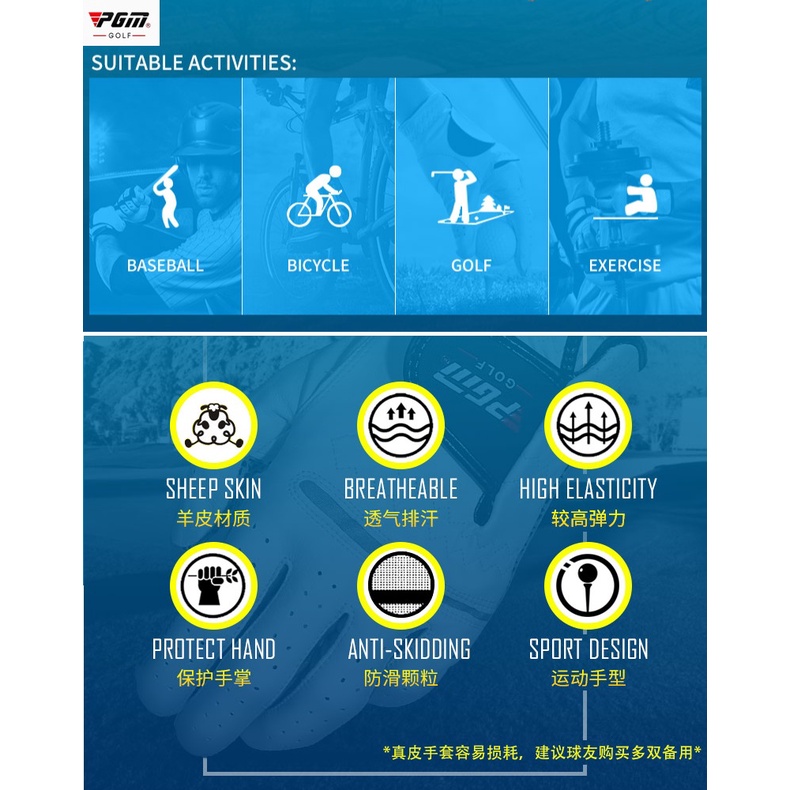 PGM GOLF ถุงมือกอล์ฟ สำหรับผู้ชาย เนื้อผ้าไมโครไฟเบอร์เบาสบาย ระบายอากาศ-กันลื่น-ดูดซับเหงื่อ