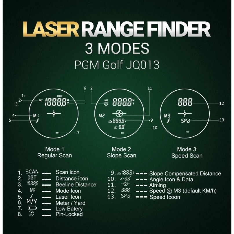 PGM GOLF Range Finder เลเซอร์วัดระยะกอล์ฟ 600 1300 หลา แบบชาร์จได้ กันน้ำ Slope Mode ระบบล็อกธง