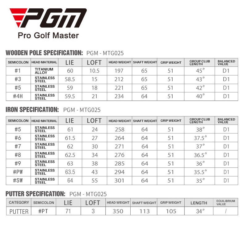 PGM G300 Men ซ้ายขวามือ 12 ชิ้นชุดไม้กอล์ฟพร้อมถุงกอล์ฟสําหรับผู้เริ่มต้นเล่นระดับกลาง