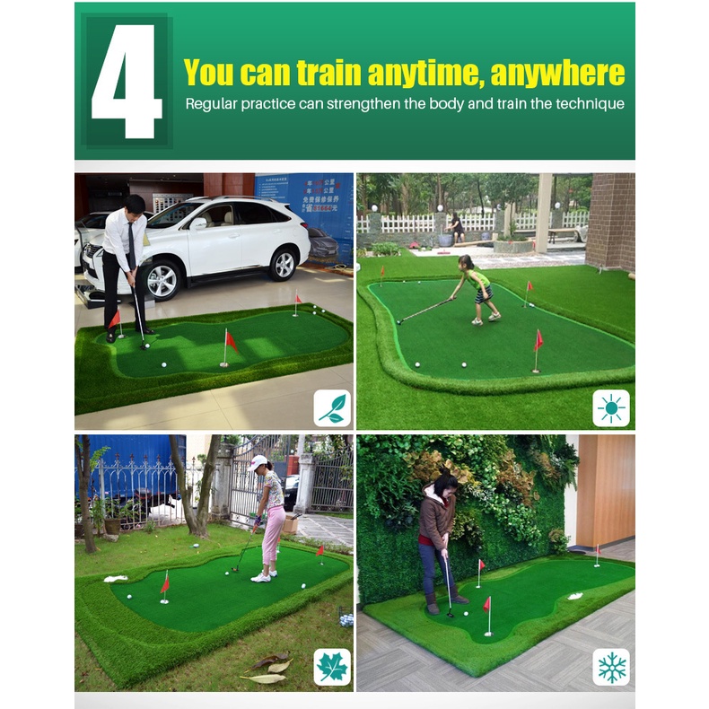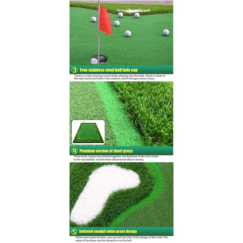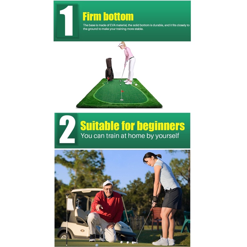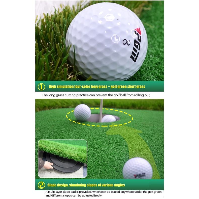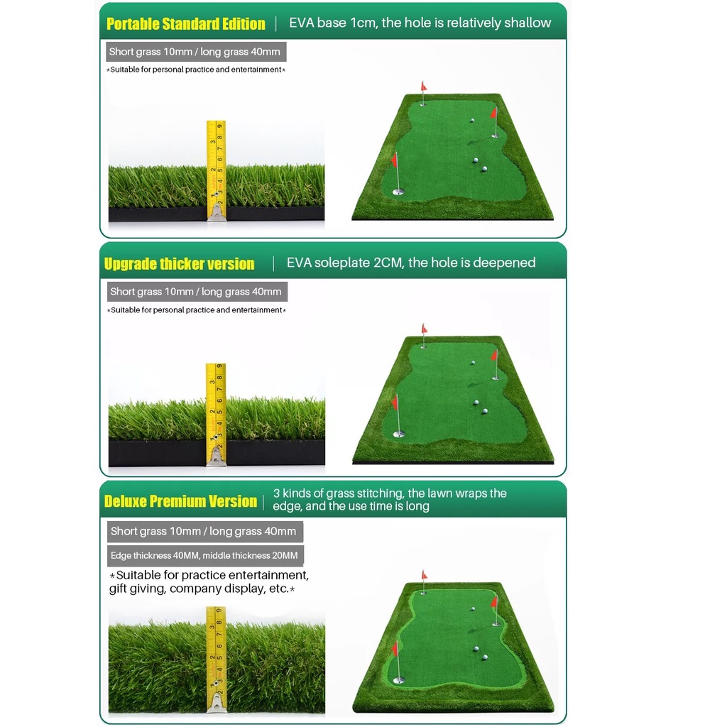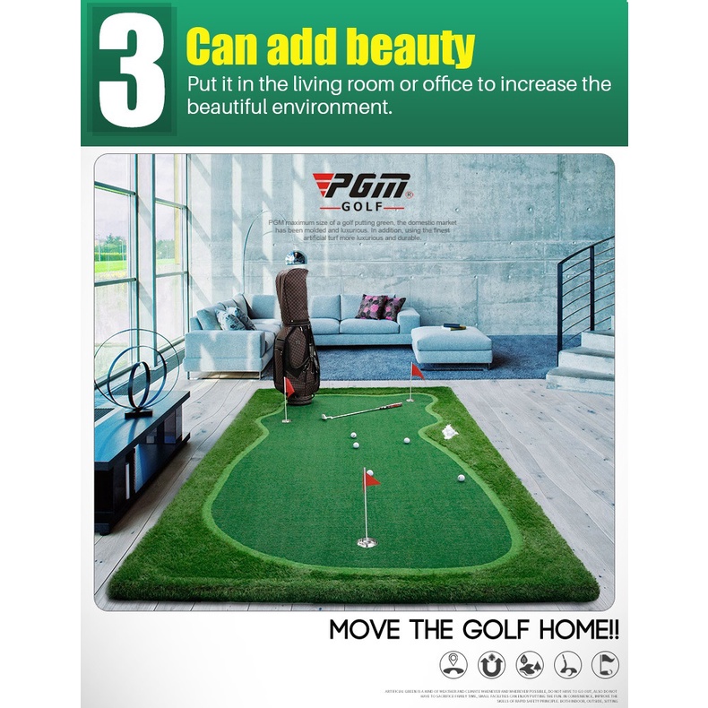 PGM GOLF หน้าจีเอ็ม หญ้าเทียมมินิกอล์ฟใส่เสื่อฝึกพัตเตอร์สีเขียวสําหรับบ้านออฟฟิศ ในร่มกลางแจ้ง