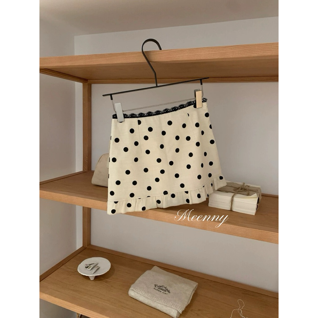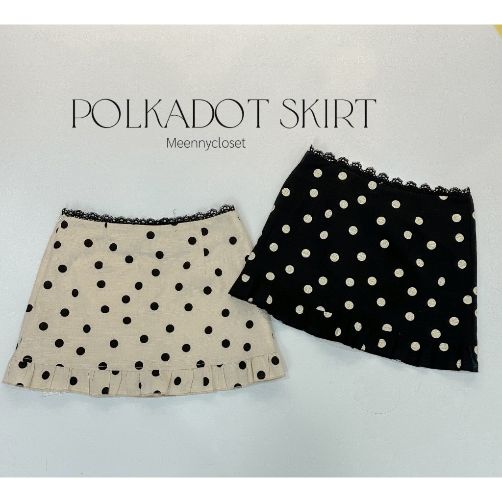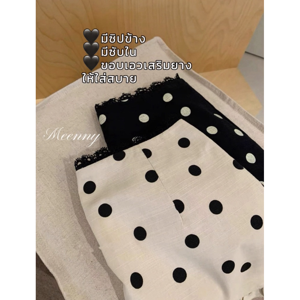 Meenny Closet | HM02 (มีsize) กระโปรงสั้นโพกาดอทเเต่งลูกไม้