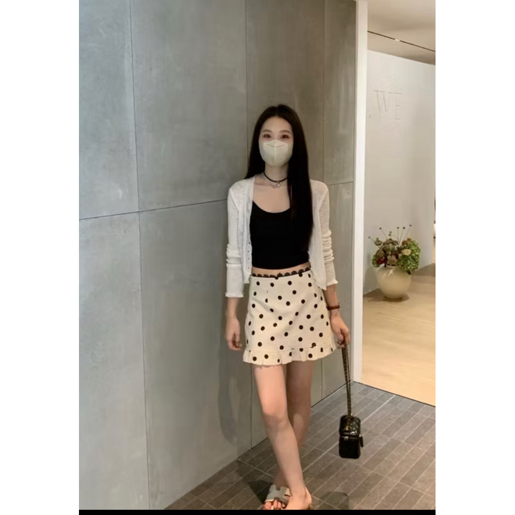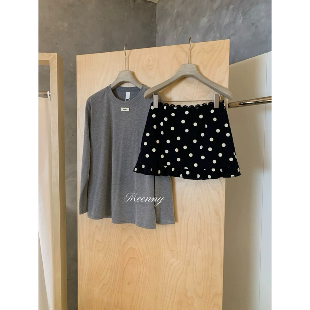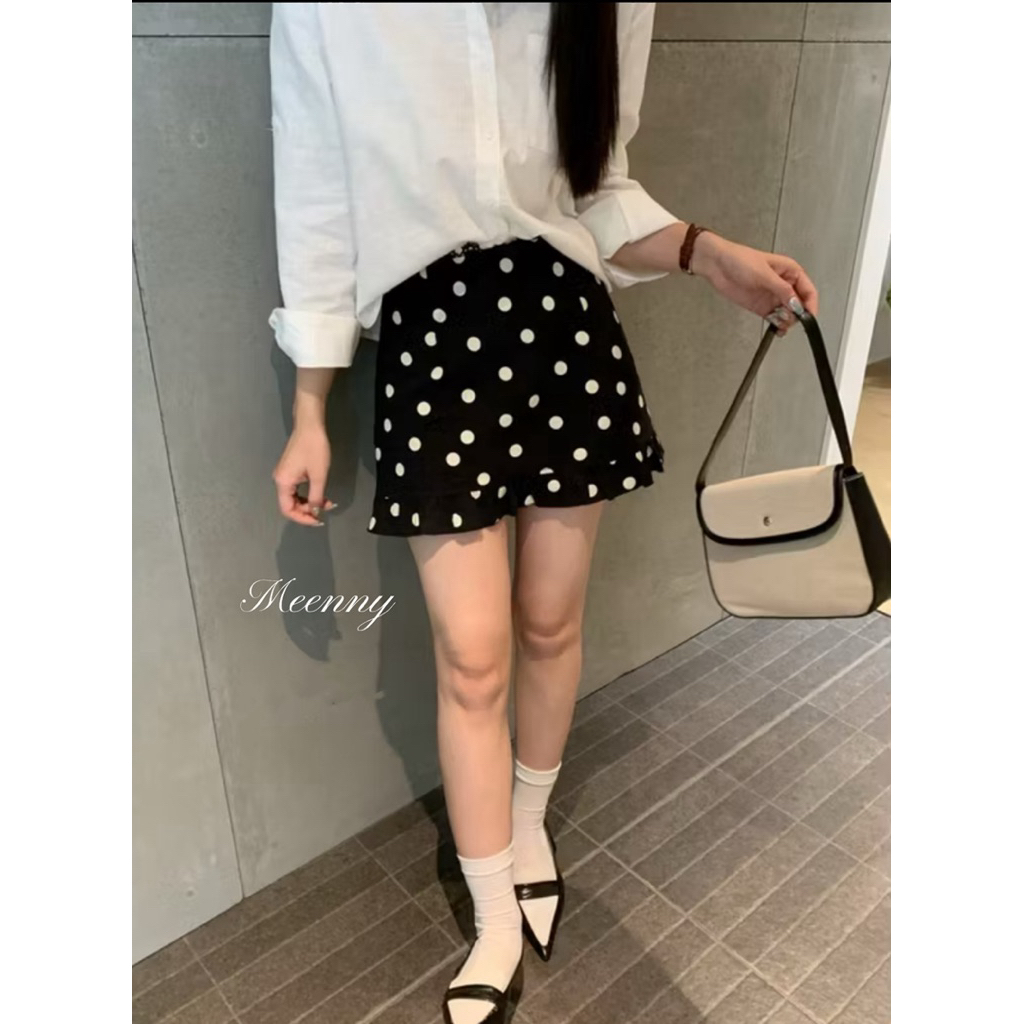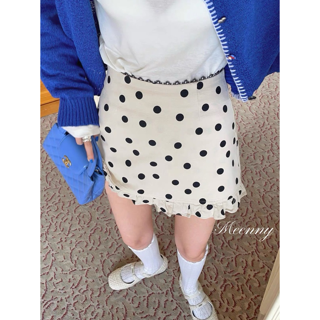Meenny Closet | HM02 (มีsize) กระโปรงสั้นโพกาดอทเเต่งลูกไม้