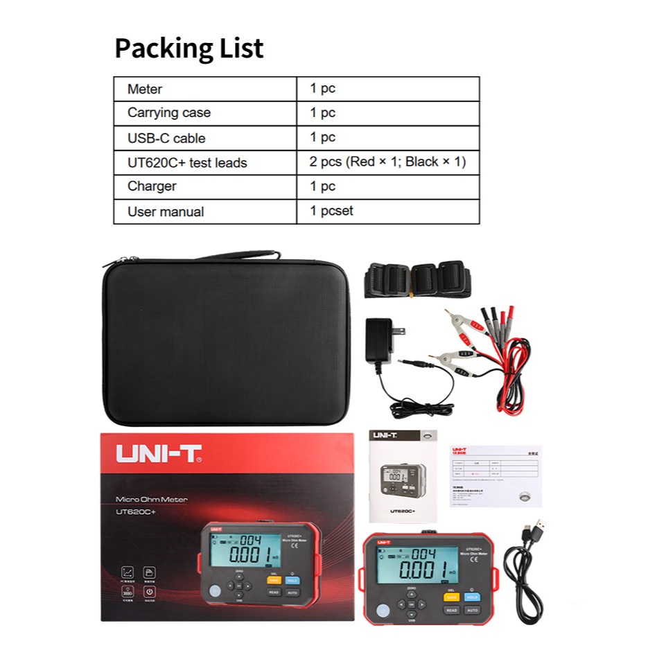 Uni-t UT620C+ Micro-Ohmmeter DC เครื่องวัดความต้านทานต่ํา Ohmmeter 0.001mΩ~300.0kΩ 1A Auto/Manual Range