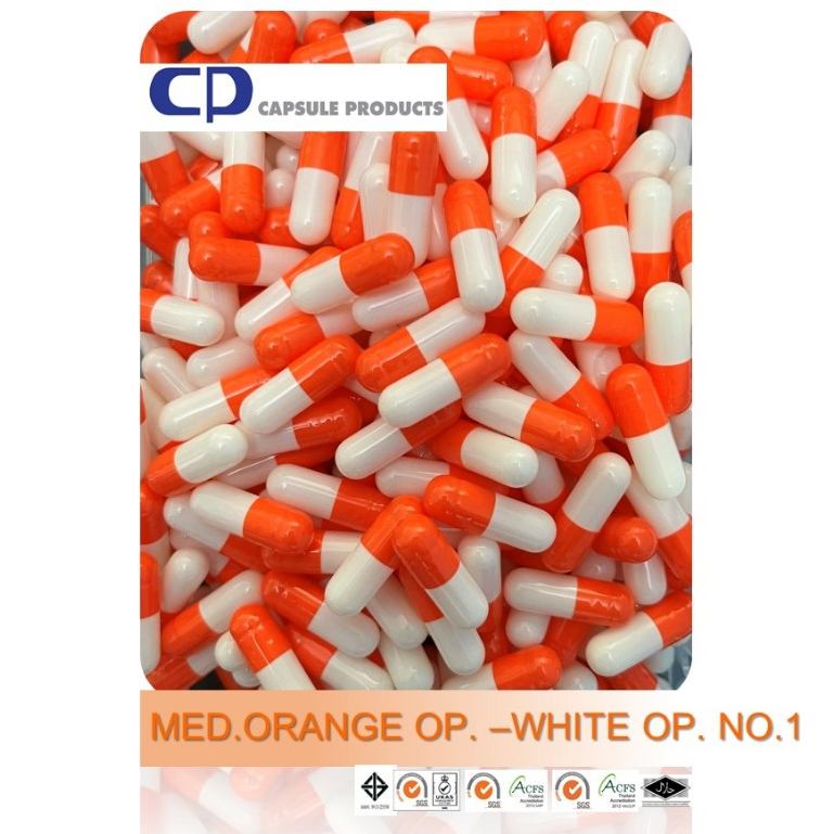 แคปซูลเปล่า สี MED.ORANGE OP. –WHITE OP. (เบอร์ 1) บรรจุ 1,000 แคปซูล/ห่อ