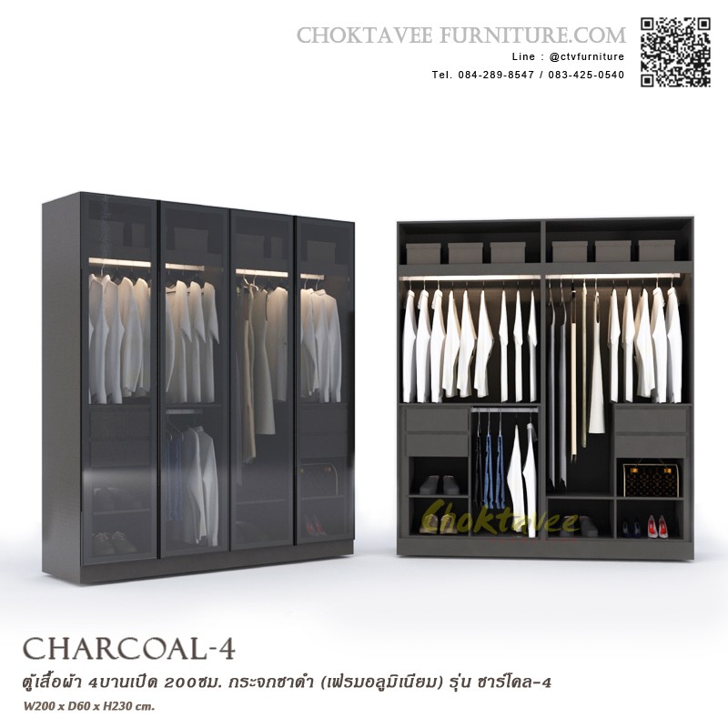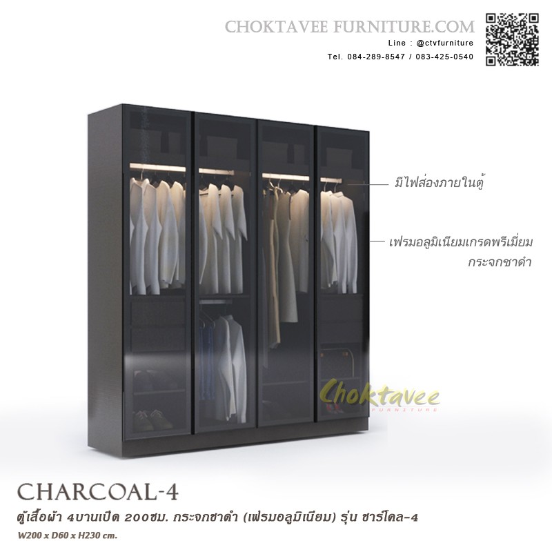 ตู้เสื้อผ้า 4บาน 200ซม. กระจกชาดำ (เฟรมอลูมิเนียม) รุ่น CHARCOAL-4 (ชาร์โคล-4)