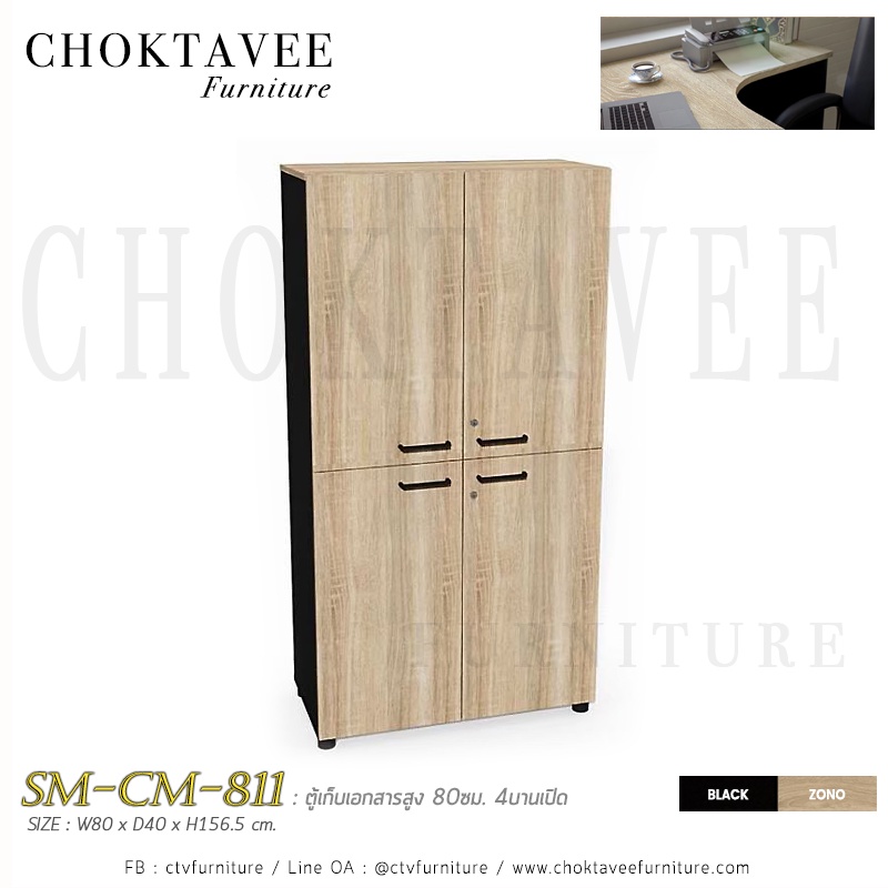 ตู้เก็บเอกสารสูง 80ซม. 4บานเปิด ลายไม้ SM-CM-811