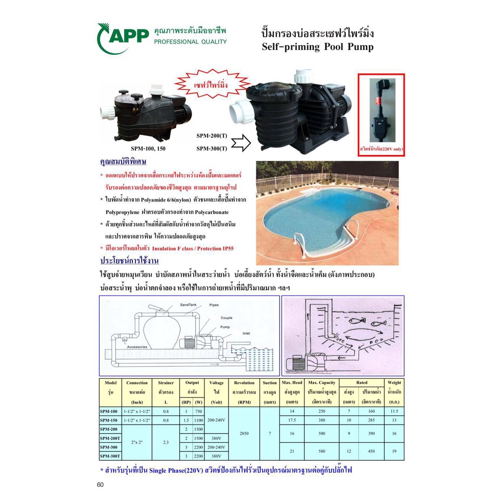 ปั้มสระว่ายน้ำ เซฟว์ไพร์มื่ง ปั้มกรองบ่อสระ มีกำลัง 1500w , 2200w ขนาด 2นิ้ว ARWANA (APP) รุ่น SPM