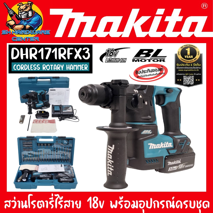 สว่านโรตารี่ไร้สาย 18v Brushless Motor ขนาด 17 มม. (11/16 นิ้ว) ยี่ห้อ MAKITA รุ่น DHR171RFX3