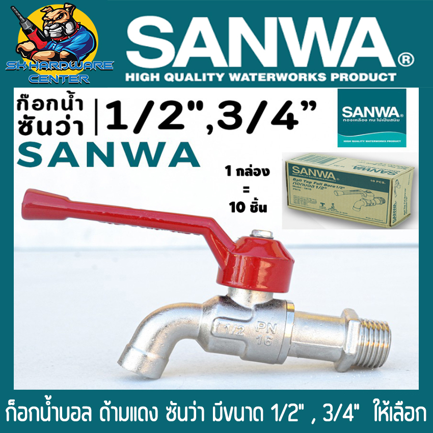 ก๊อกน้ำด้ามแดง SANWA ขนาด 1/2" (4หุล) , 3/4" (6หุล) ขายยกกล่อง 10ชิ้น