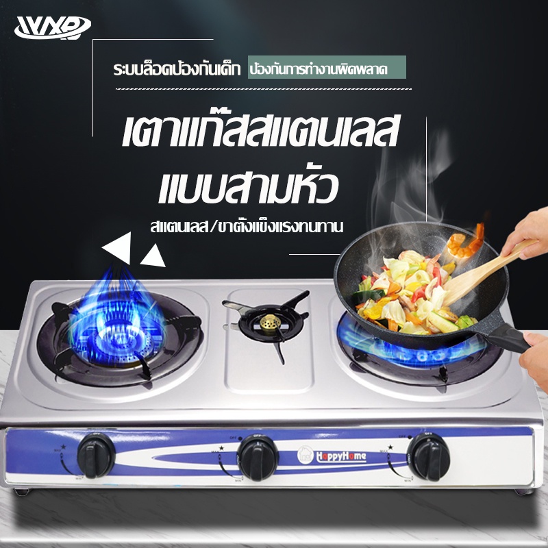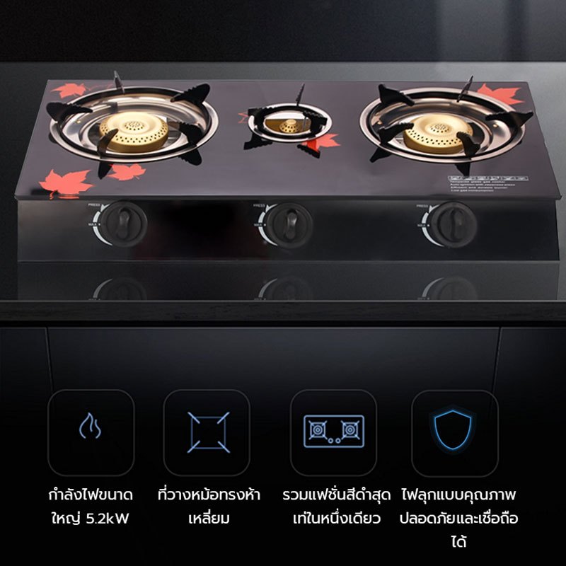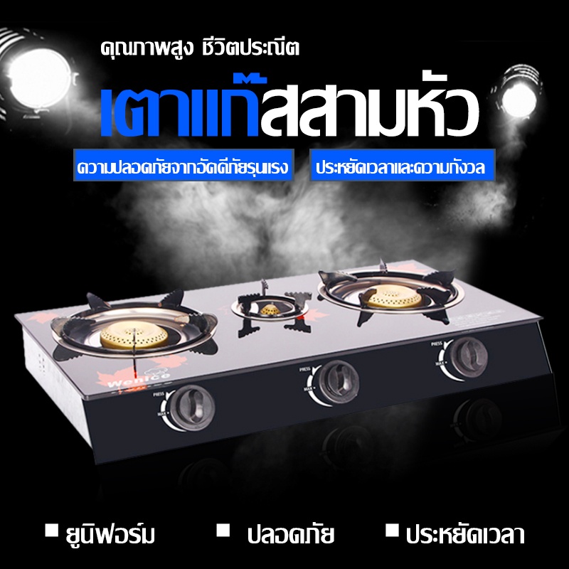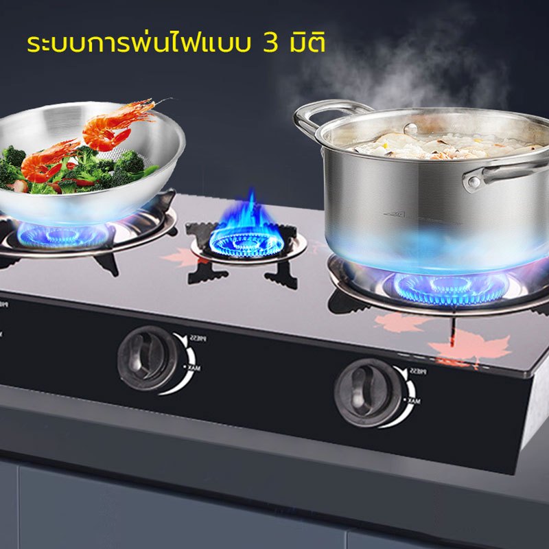 เตาแก๊สหัวทองเหลือง 3 หัว เตาแก๊ส 2 หัว หน้ากระจกหัวคู่ gas stove 5KW ไฟแรง