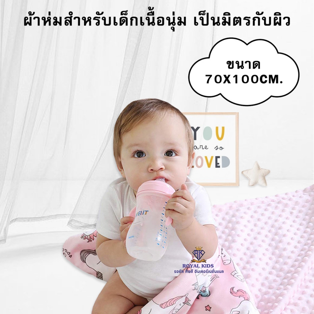 C0051 ผ้าห่มดอทขนมิ้งค์ กันสะดุ้ง สำห รับเด็กแรกเกิด ขนาด 70 x 100 ซม.