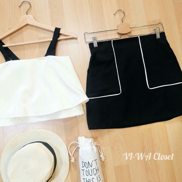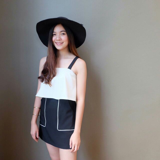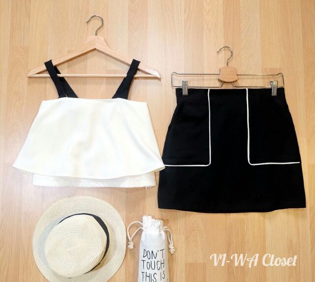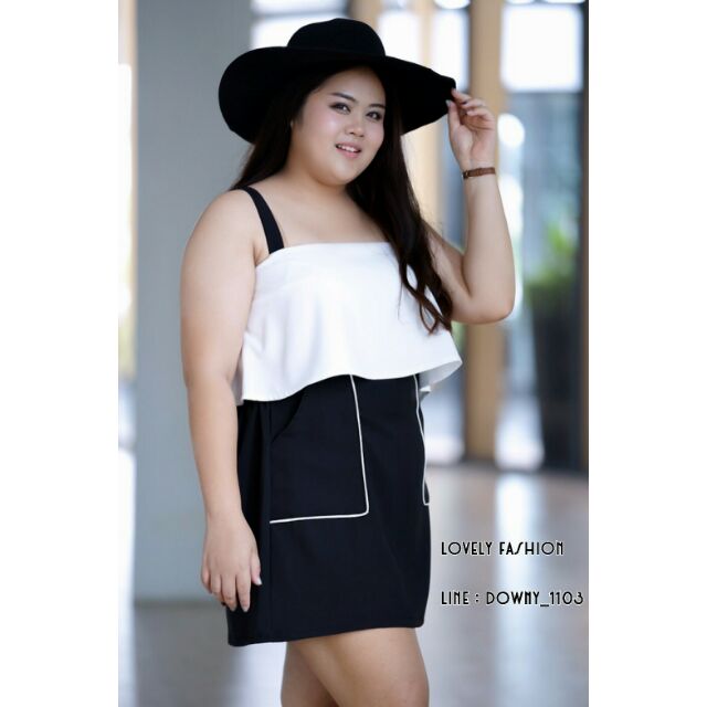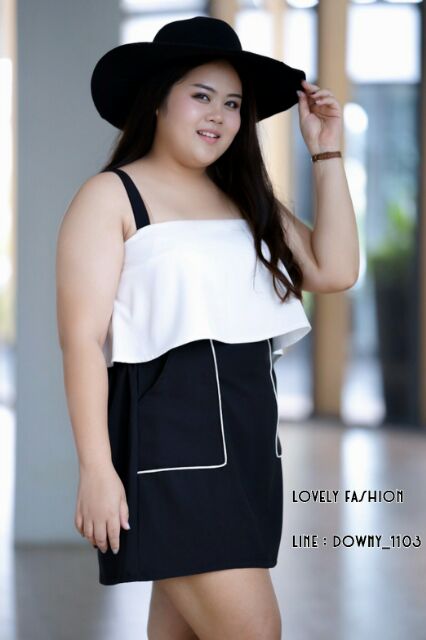 ชุดเซ็ท2ชิ้นสำหรับสาวอวบ เสื้อสายเดี่ยวทูโทน+กระโปรง
