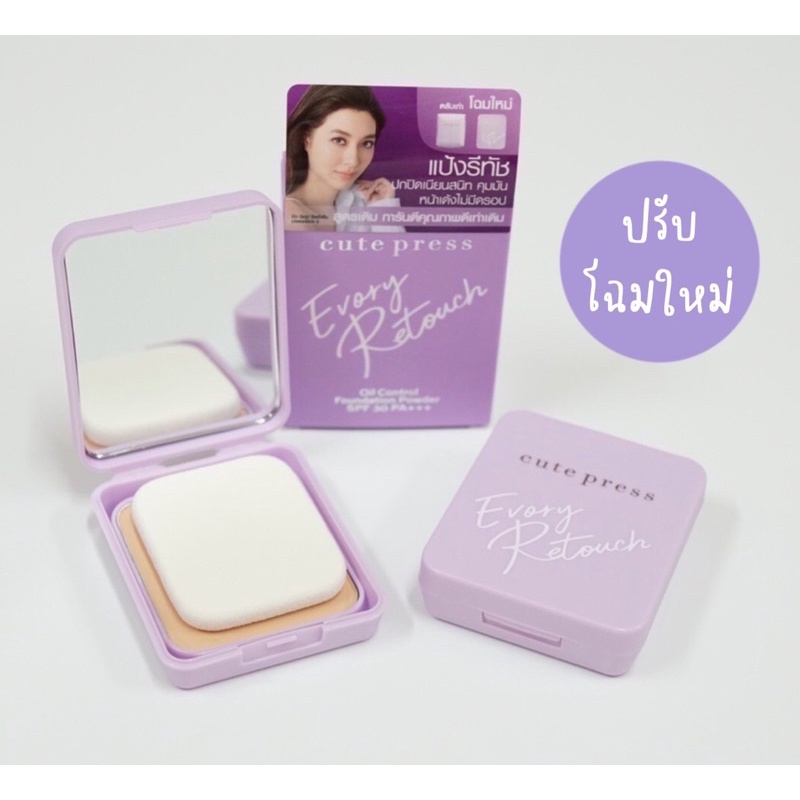 ของแท้ (รีฟิล) Cute Press Evory Retouch Oil Control Foundation Powder อ ิเวอร์รี่ รีทัช คิวท์เพรส แป้งพัฟ