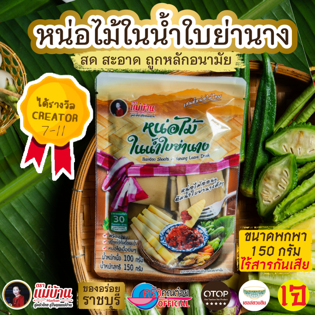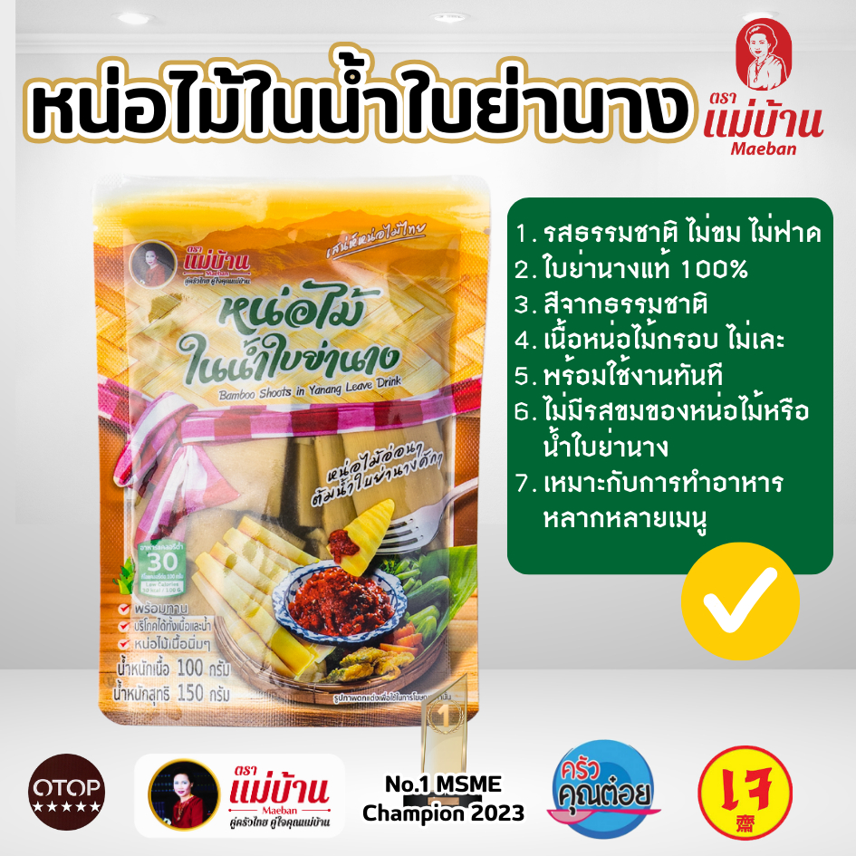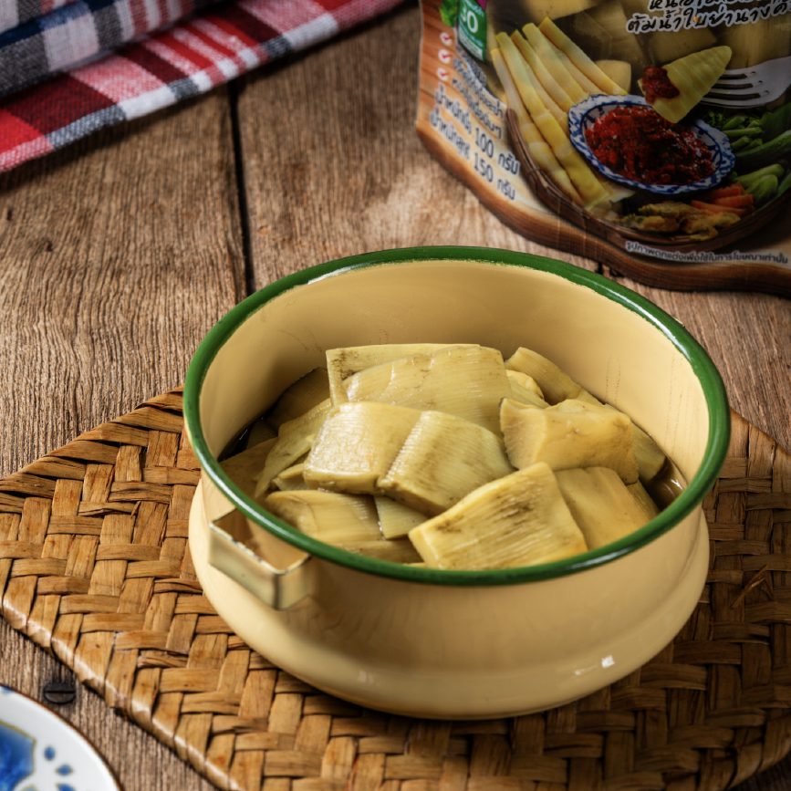 [ไม่ใส่วัตถุกันเสีย] แม่บ้าน หน่อไม้ในน้ำใบย่านาง 150 กรัม พร้อมทาน ไม่เหม็นเปรี้ยว