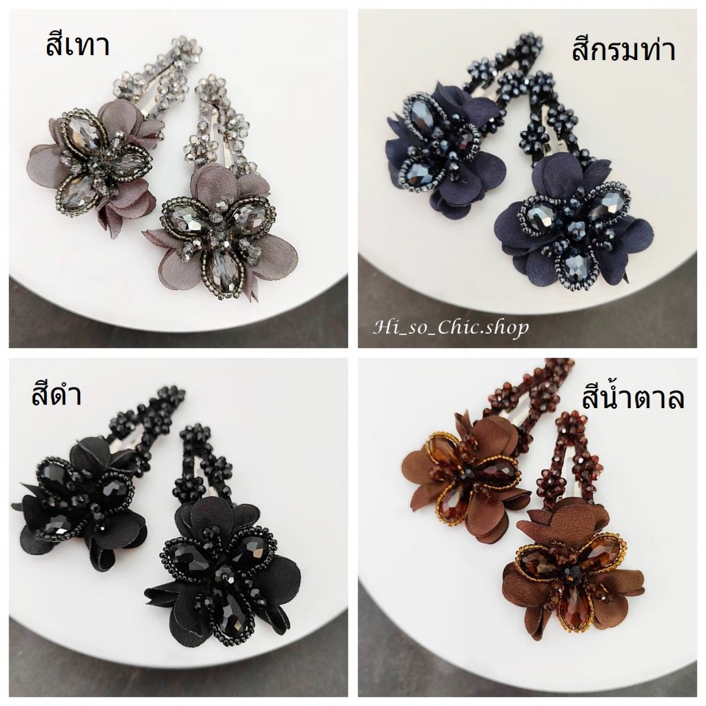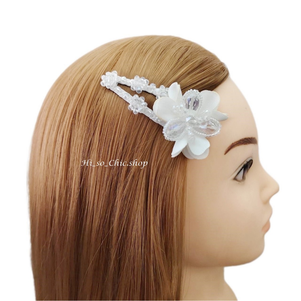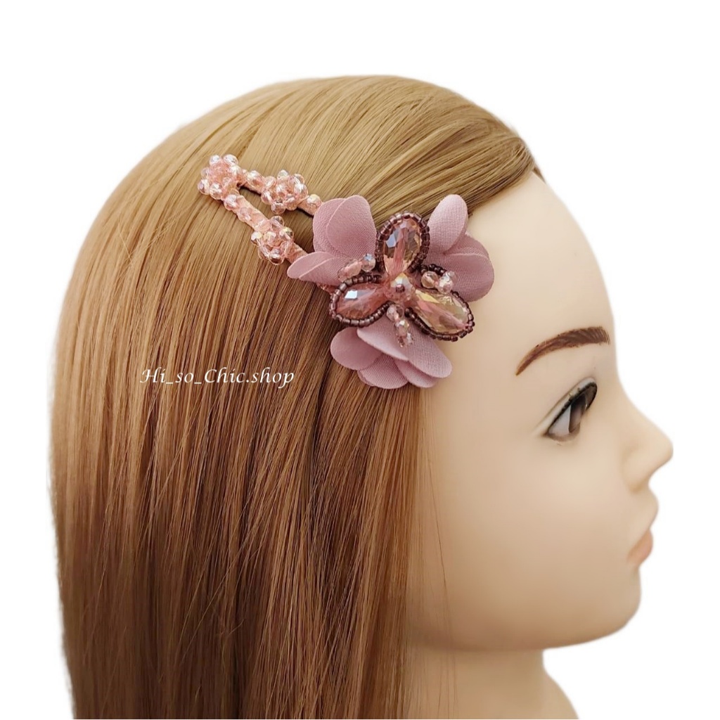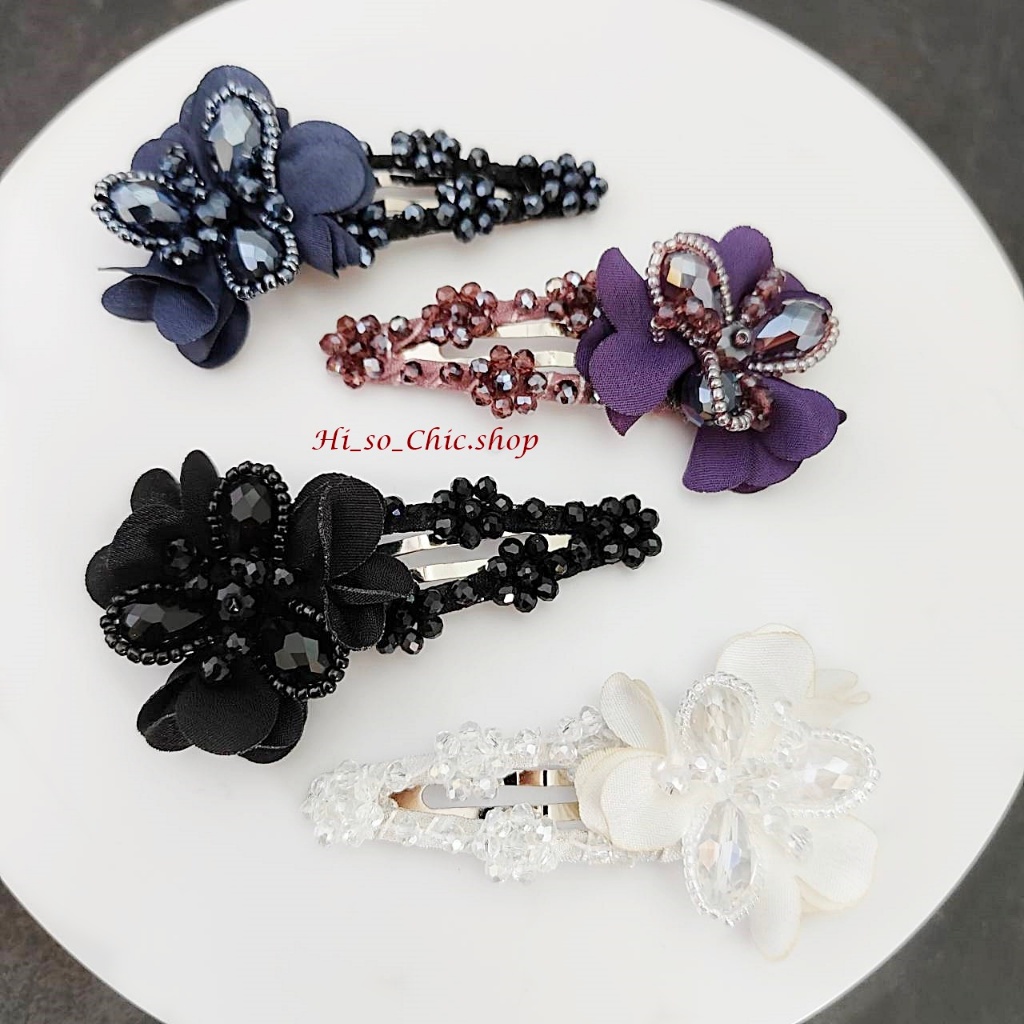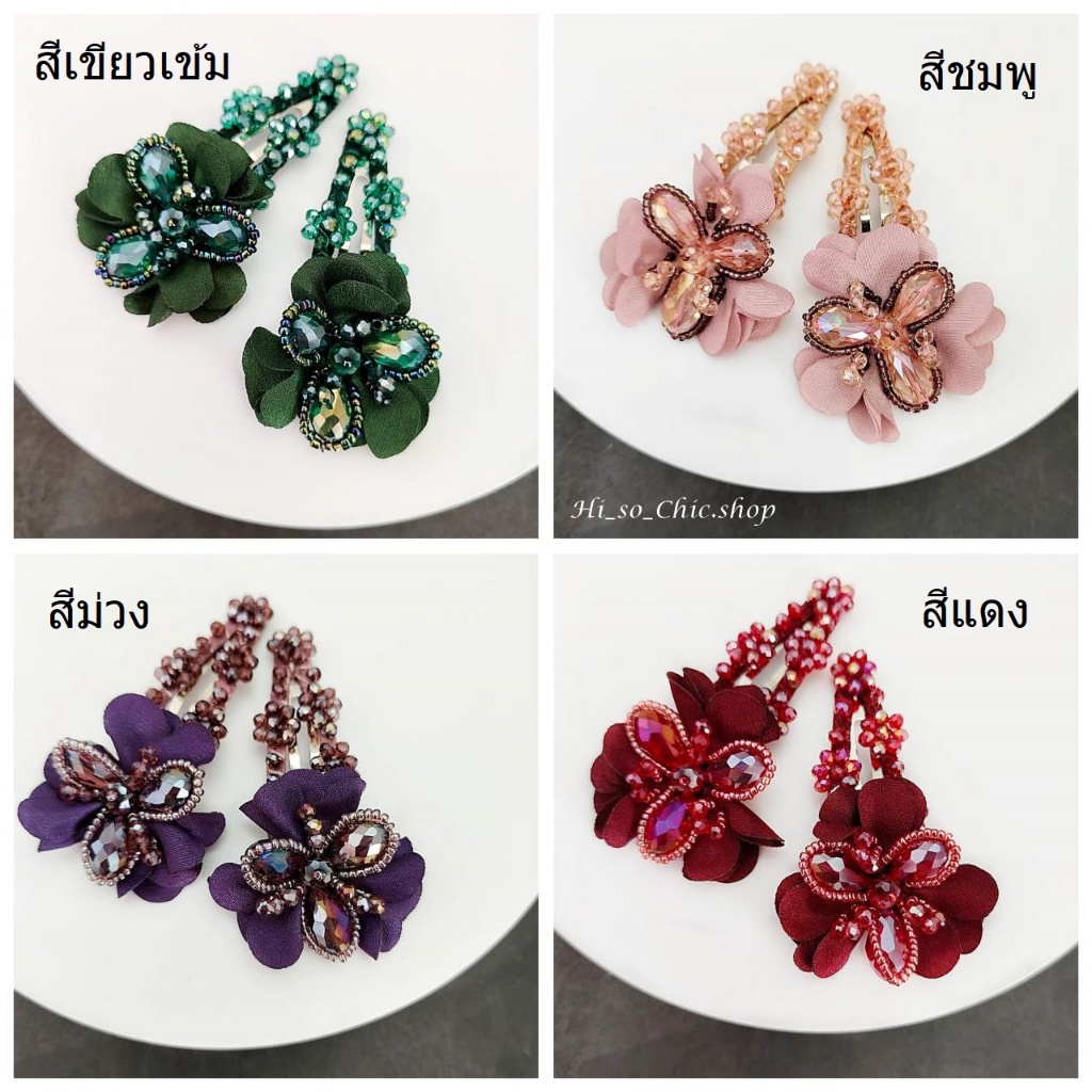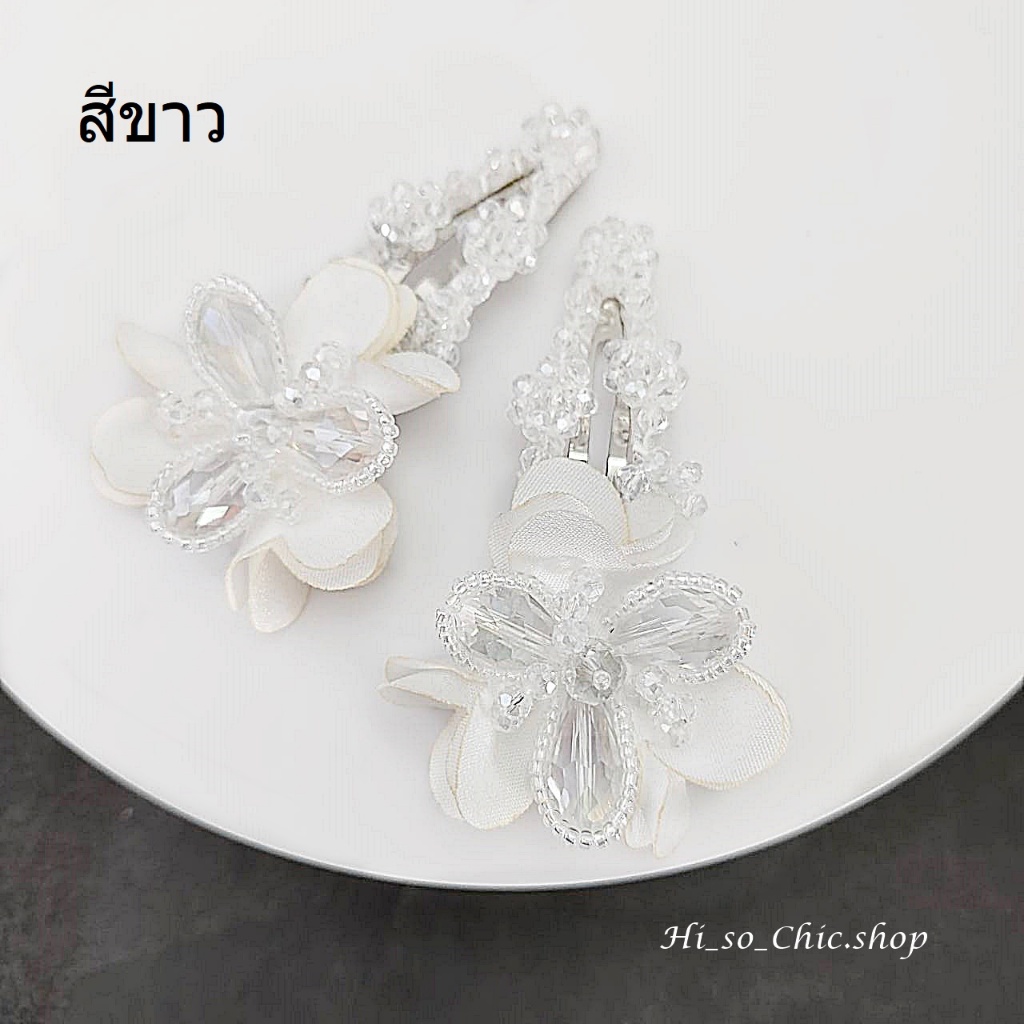 (ได้ 2 ชิ้น) กิ๊บติดผม กิ๊บป๊อกแป๊ก งานแฮนด์เมด ร้อยเม็ดคริสตัล จี้ดอกไม้ ใส่ออกงาน สไตล์หวานๆ