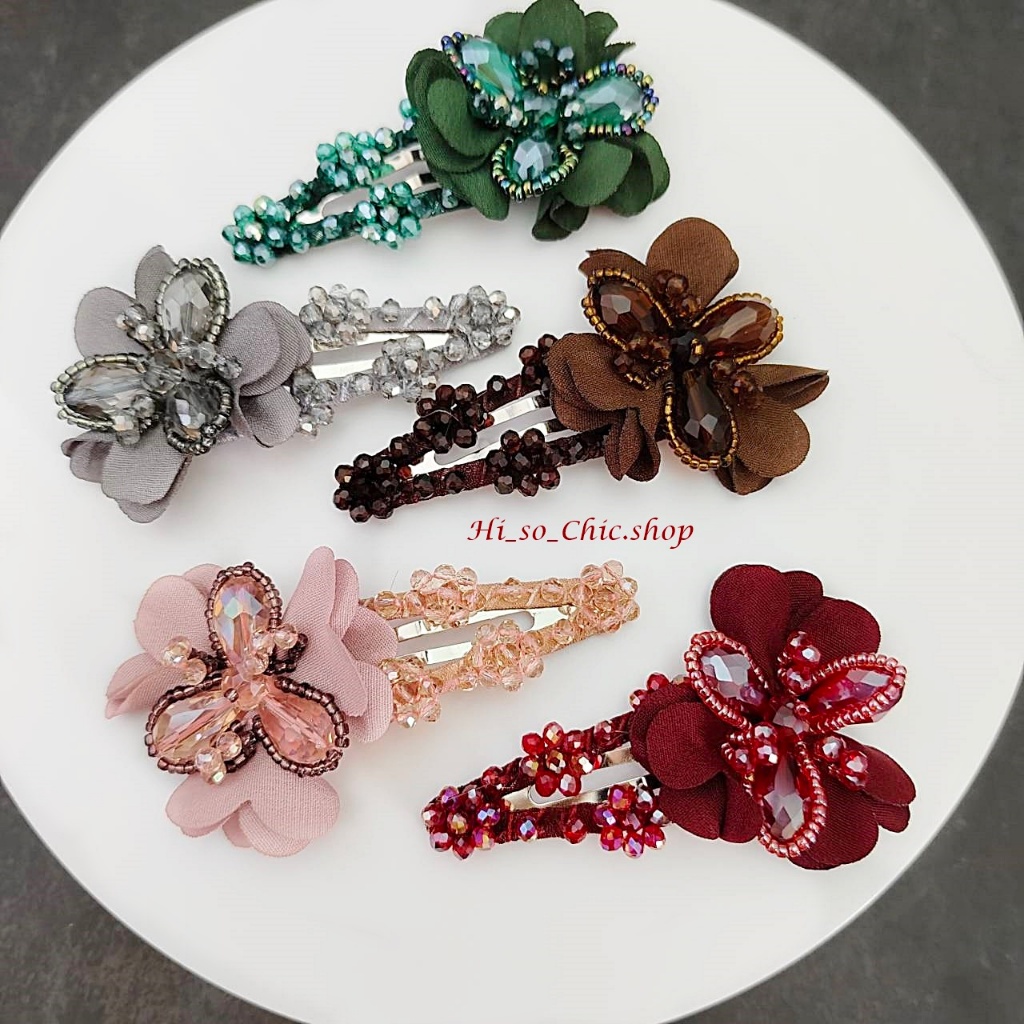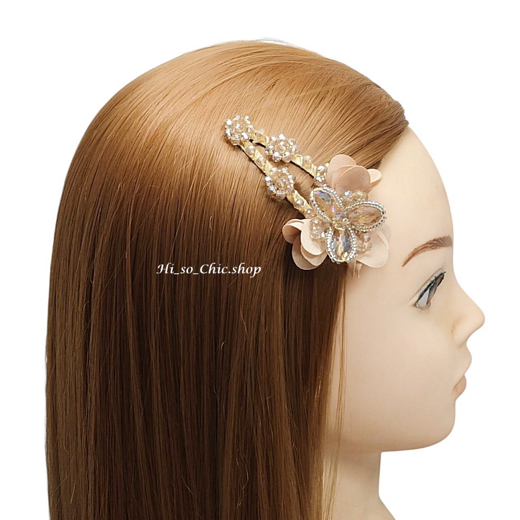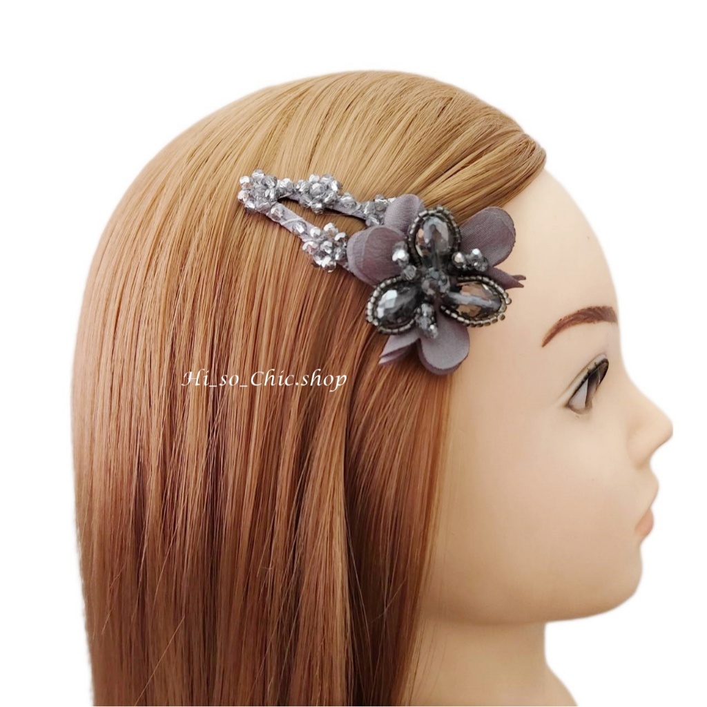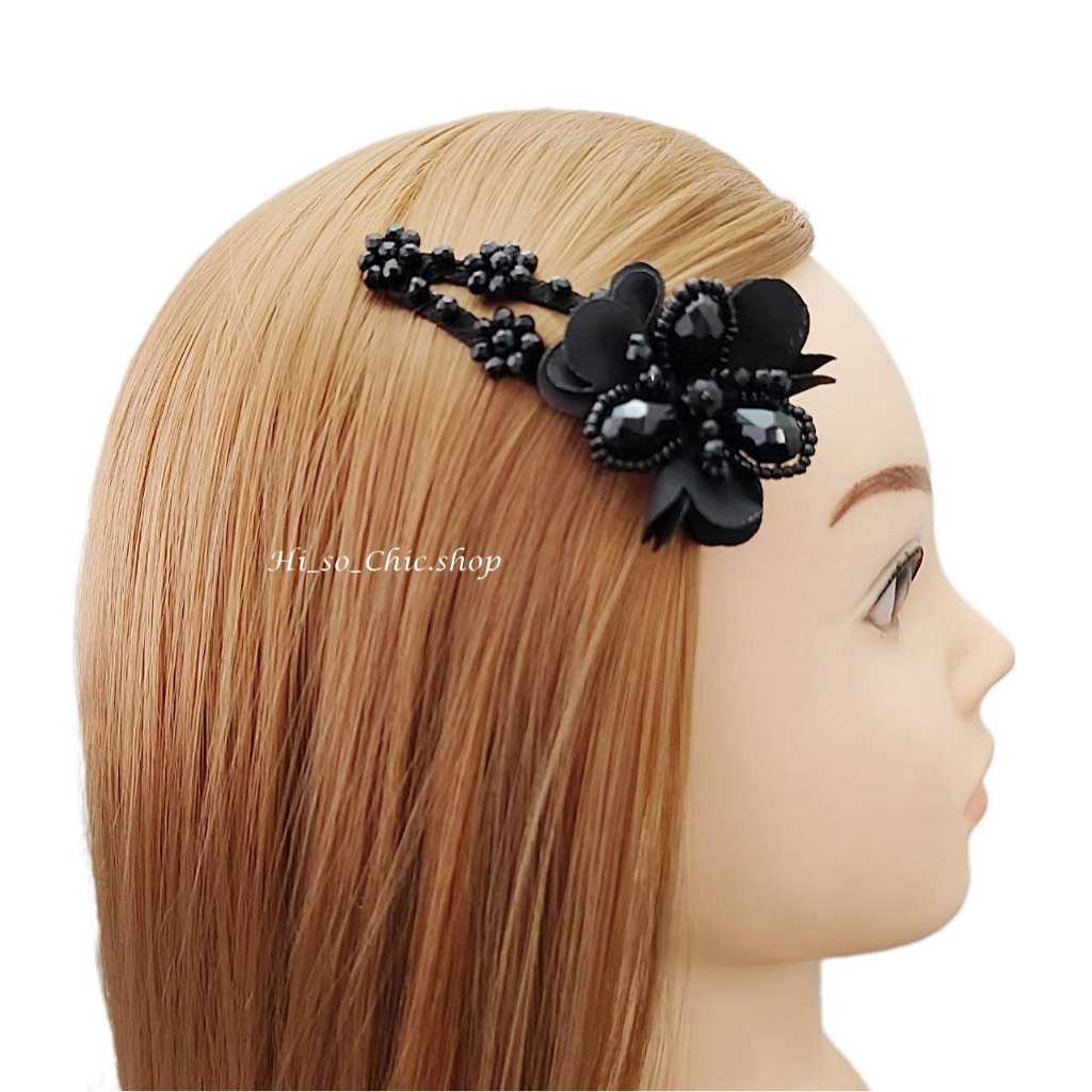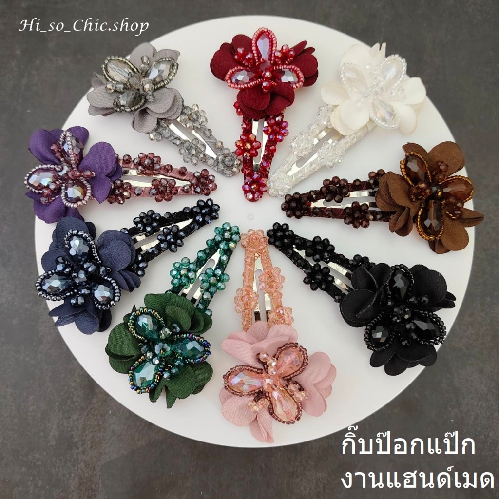 (ได้ 2 ชิ้น) กิ๊บติดผม กิ๊บป๊อกแป๊ก งานแฮนด์เมด ร้อยเม็ดคริสตัล จี้ดอกไม้ ใส่ออกงาน สไตล์หวานๆ
