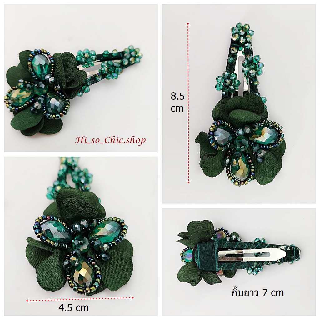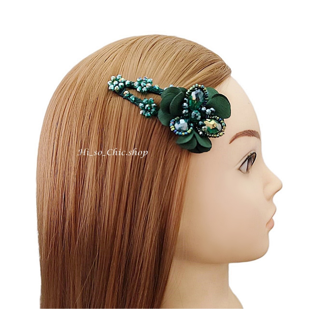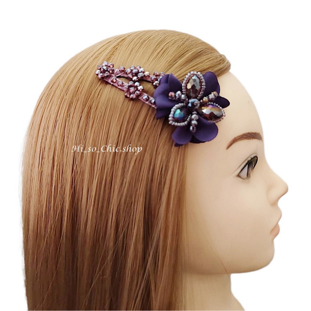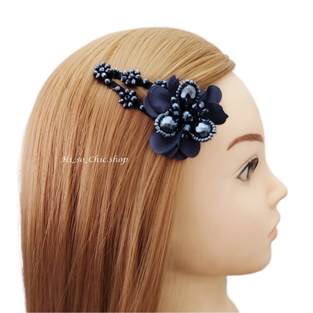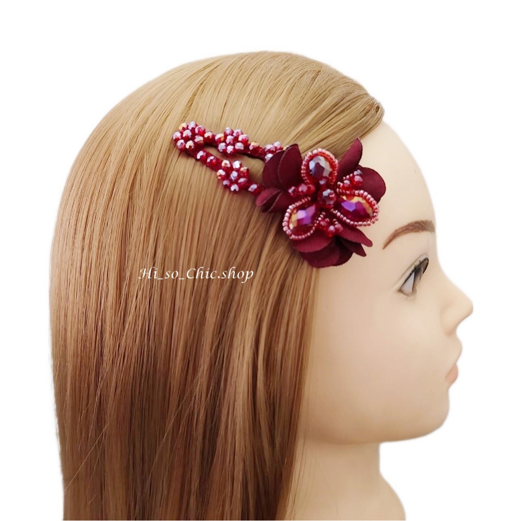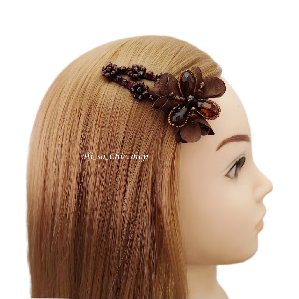 (ได้ 2 ชิ้น) กิ๊บติดผม กิ๊บป๊อกแป๊ก งานแฮนด์เมด ร้อยเม็ดคริสตัล จี้ดอกไม้ ใส่ออกงาน สไตล์หวานๆ