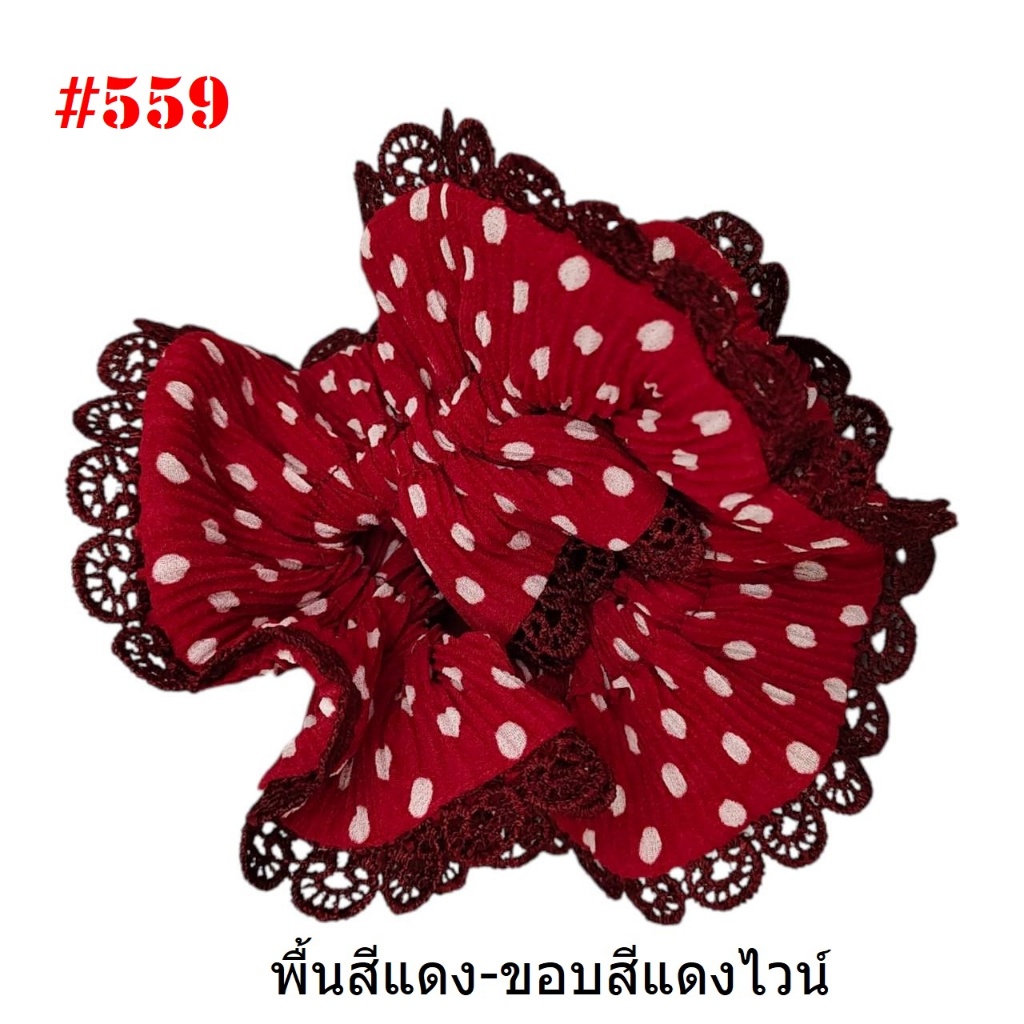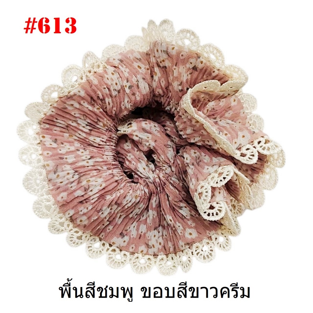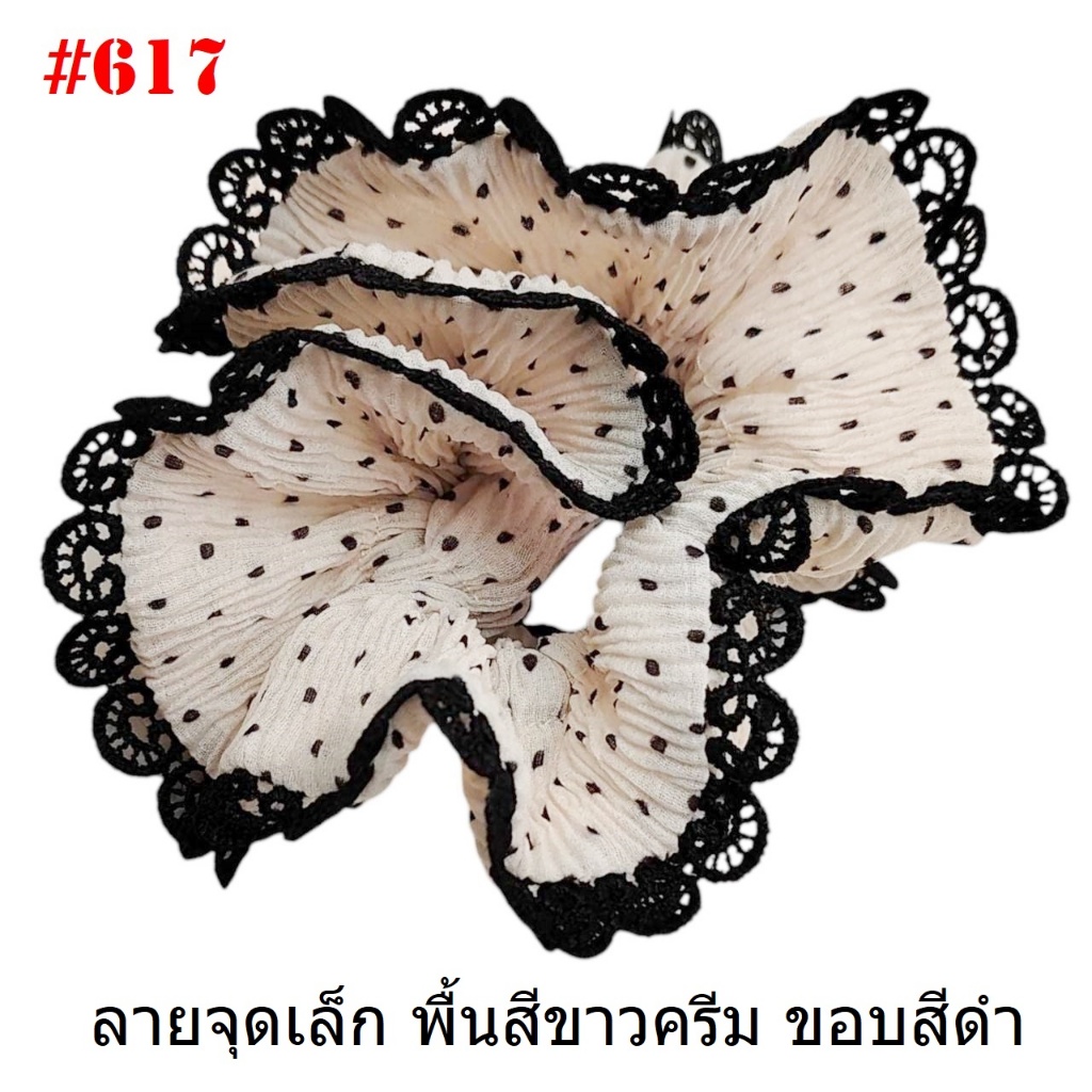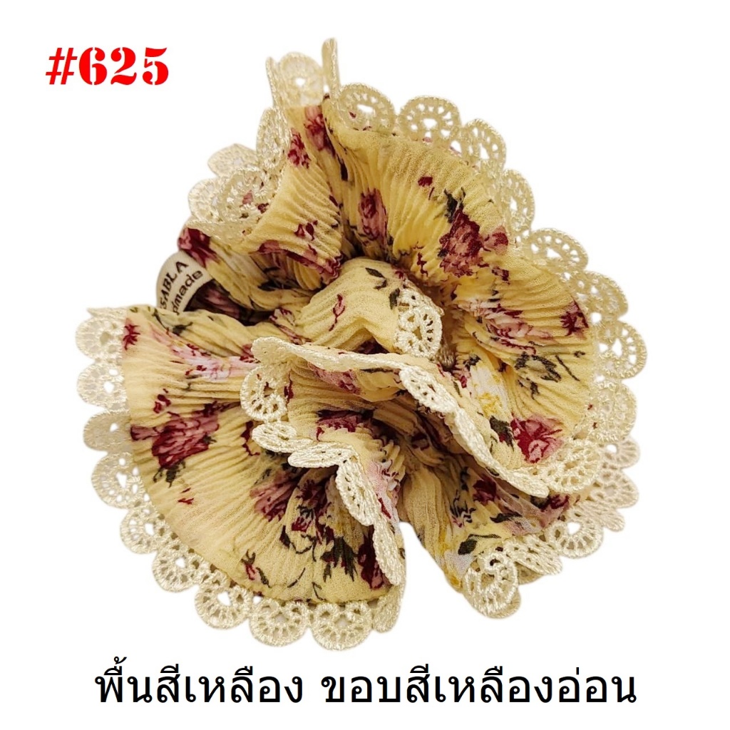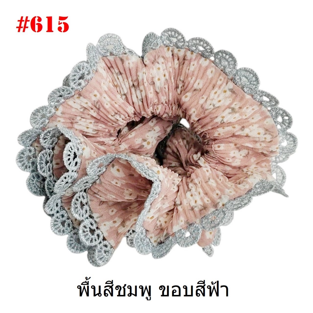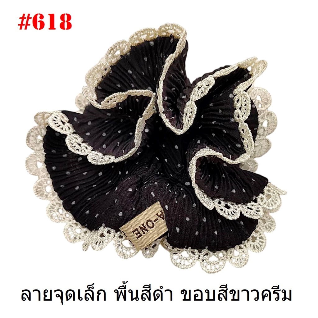 (#541-655) A-ONE ยางมัดผม ยางรัดผม ยี่ห้อ เอ-วัน A1 ผ้าอัดพลีด ขอบลูกไม้ (ราคาต่อชิ้น)