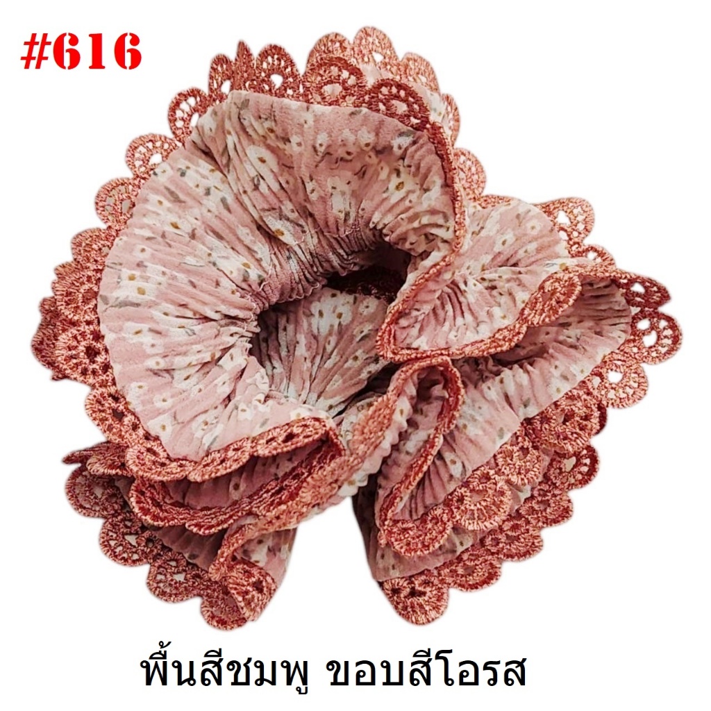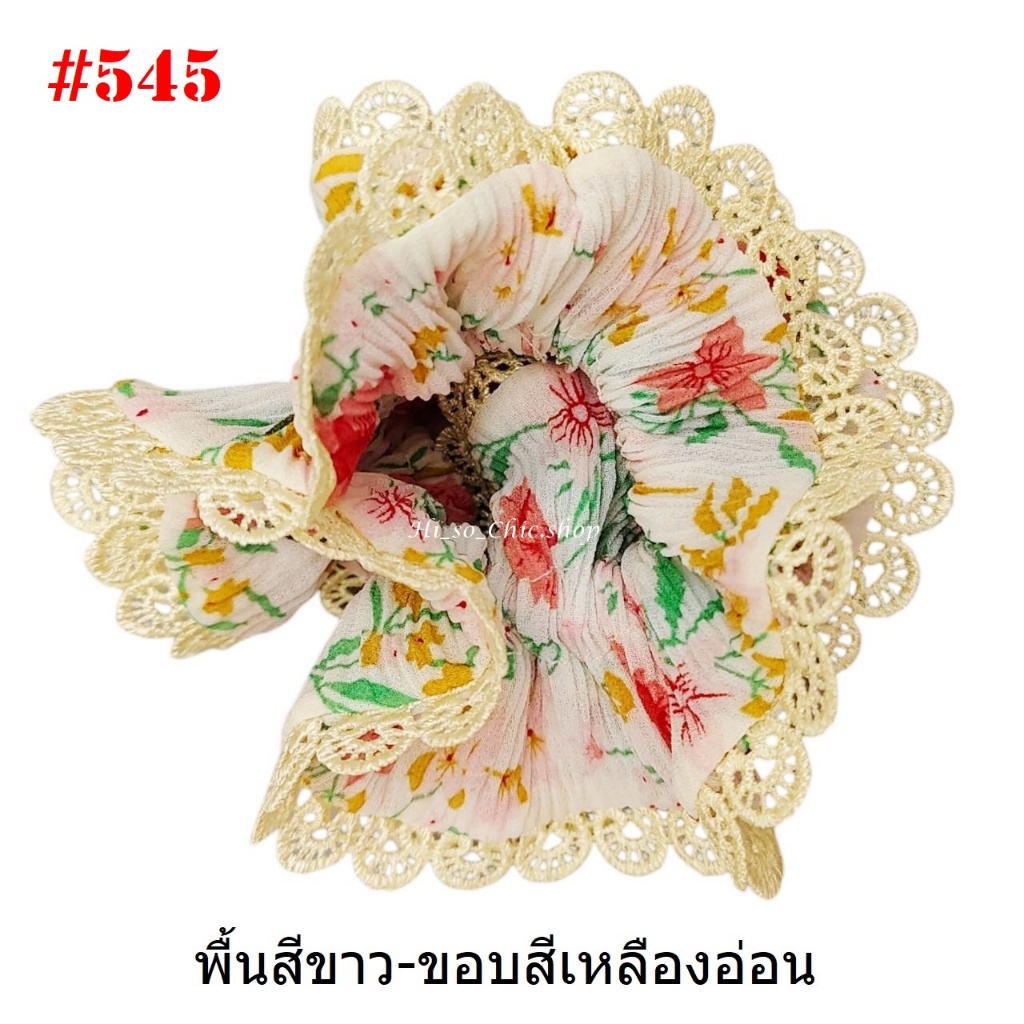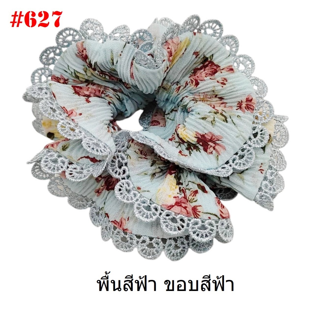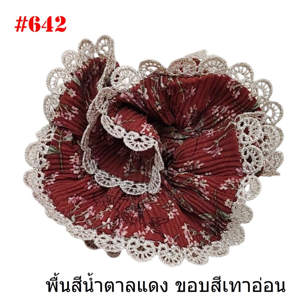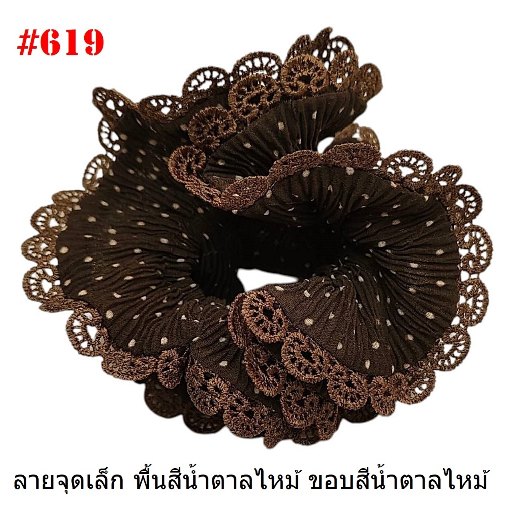 (#541-655) A-ONE ยางมัดผม ยางรัดผม ยี่ห้อ เอ-วัน A1 ผ้าอัดพลีด ขอบลูกไม้ (ราคาต่อชิ้น)